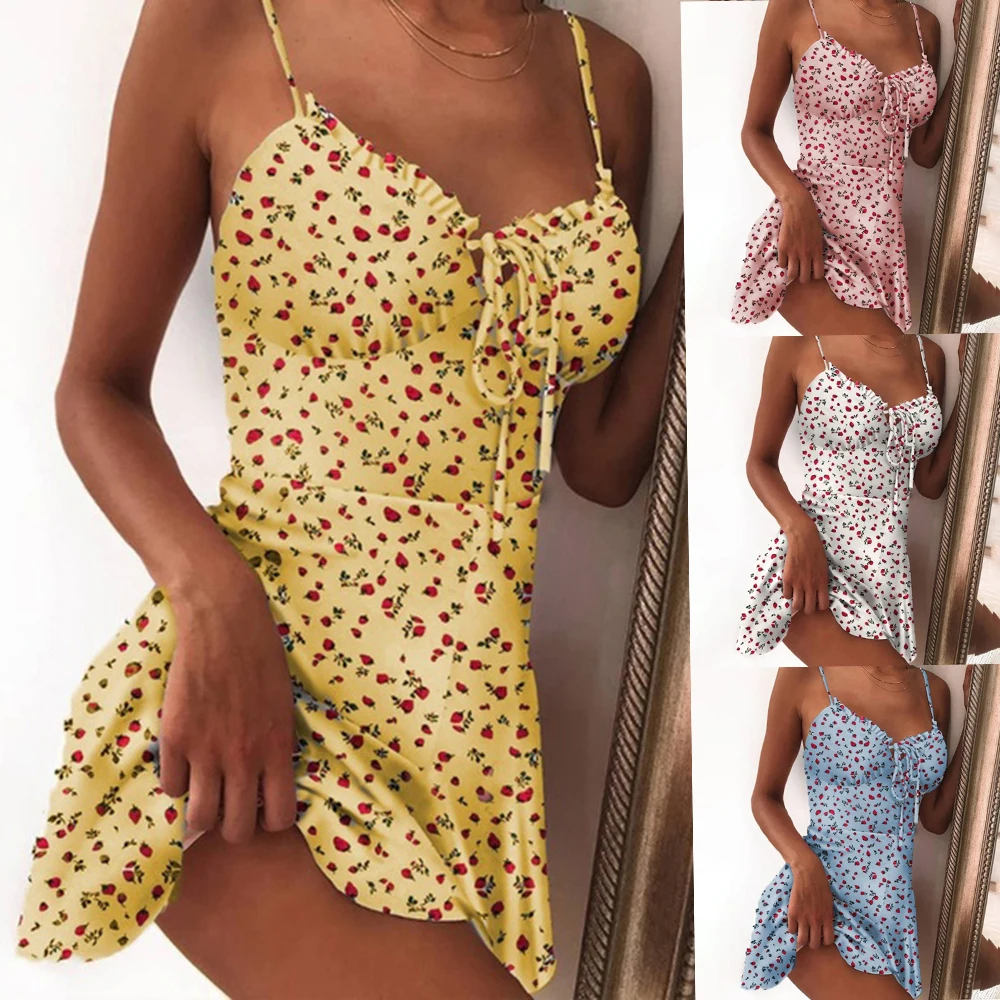Related Product for vintage print dress and Fashion Summer Bohemia Spaghetti Dress Women Vintage Deep V Neck Dress Strpless Party Dress Night Slim Short Dress Hot Deal
