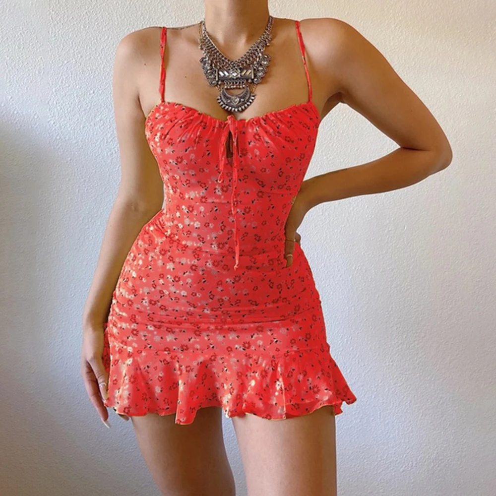 Limited Price of Fashion Summer Bohemia Spaghetti Dress Women Vintage Deep V Neck Dress Strpless Party Dress Night Slim Short Dress Hot Deal