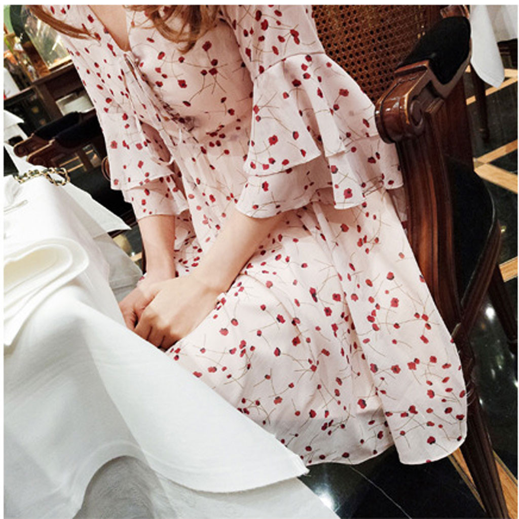 Fashion Women Floral Vintage Short Beach Holiday Floral Retro Dress
