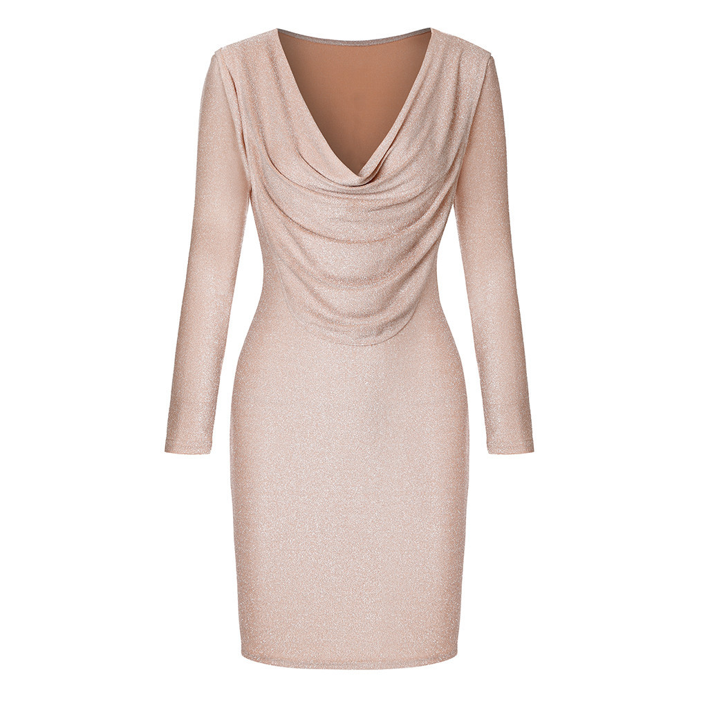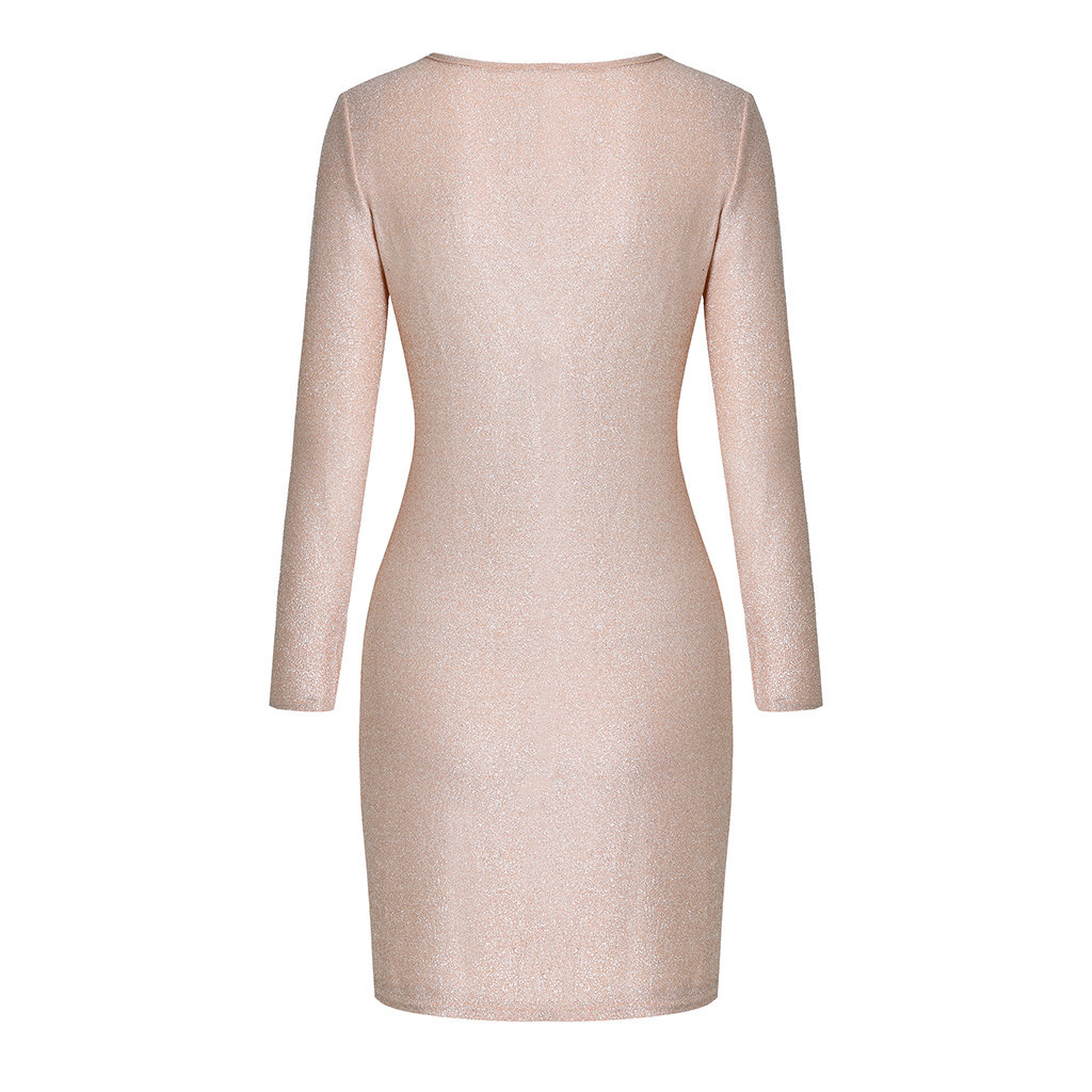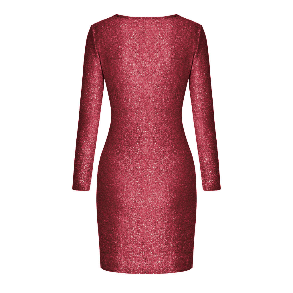 Women Fashion V-Neck Bodycon Sequins Dress Long Sleeve Party Mini Dresses