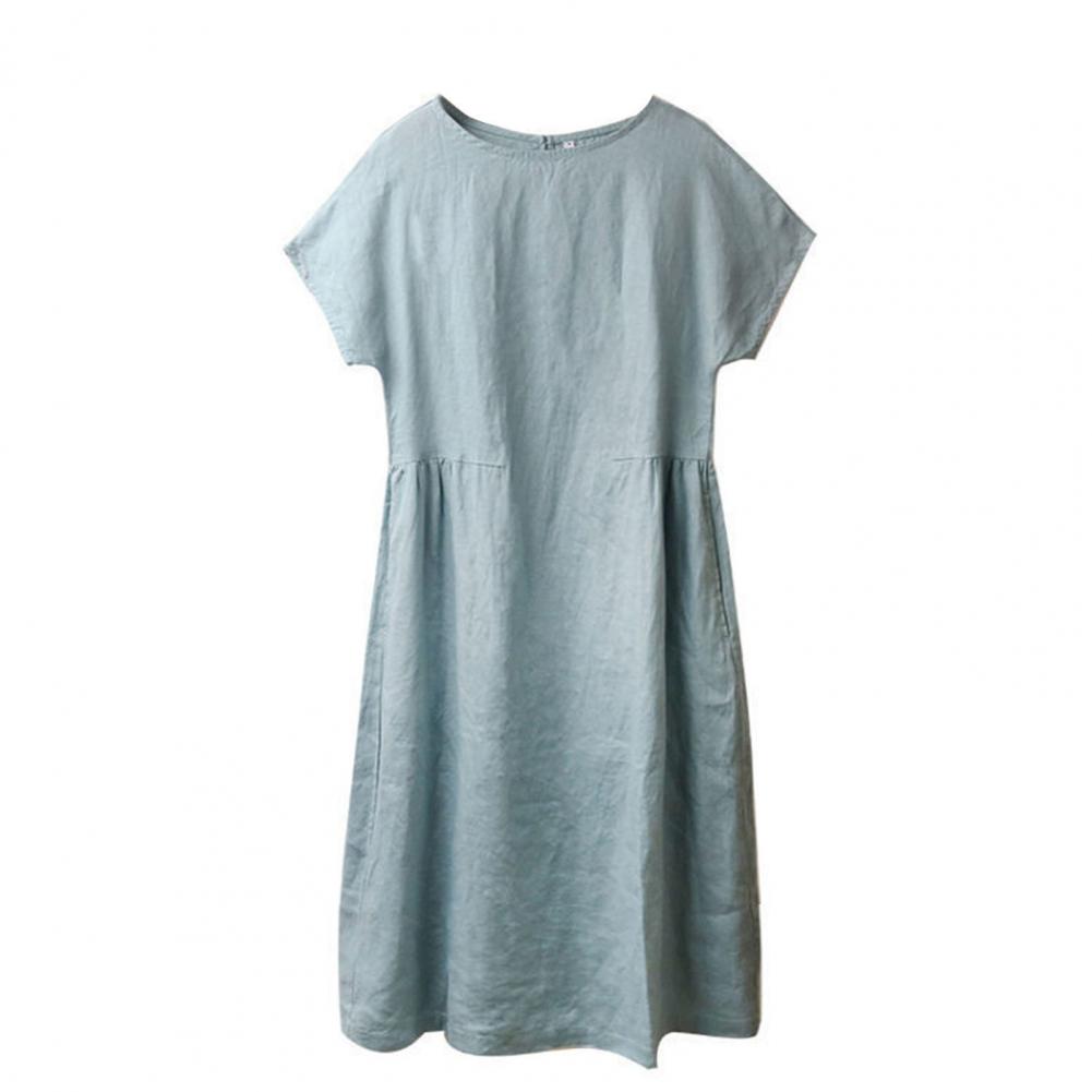 Buy Women Dress Solid Color Large Hem Short Sleeve Pockets Loose Midi Dress for Work and You will Save USD 0.94 or 35% %, Becuase You Just Pay for 1.76 not Full Price for 2.70