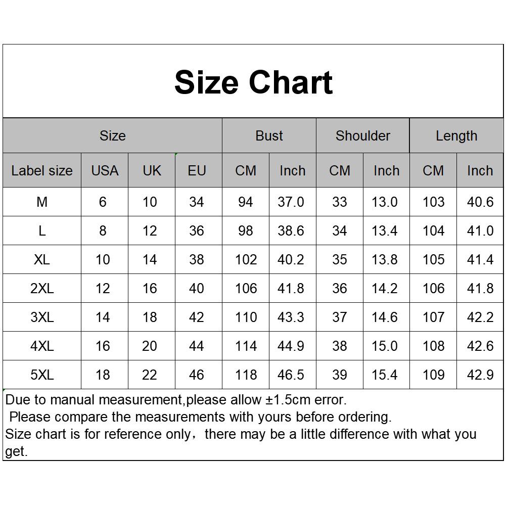 [Our Size 5XL] Bust: 118cm/46.5", Shoulder: 39cm/15.4", Length: 109cm/42.9" (Approx.)