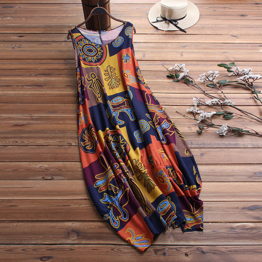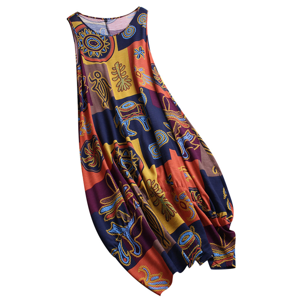 Related Product for plus size women dress vintage and Women Summer Dress Vintage Bohemian Print Floral Sleeveless O-neck Straps Fashion Lady Beach Maxi Dress Vestidos Plus Size