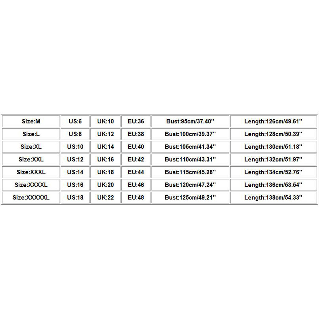| XXXXXL | 18 | 22 | 48 | 125cm/49.21'' | 138cm/54.33'' |