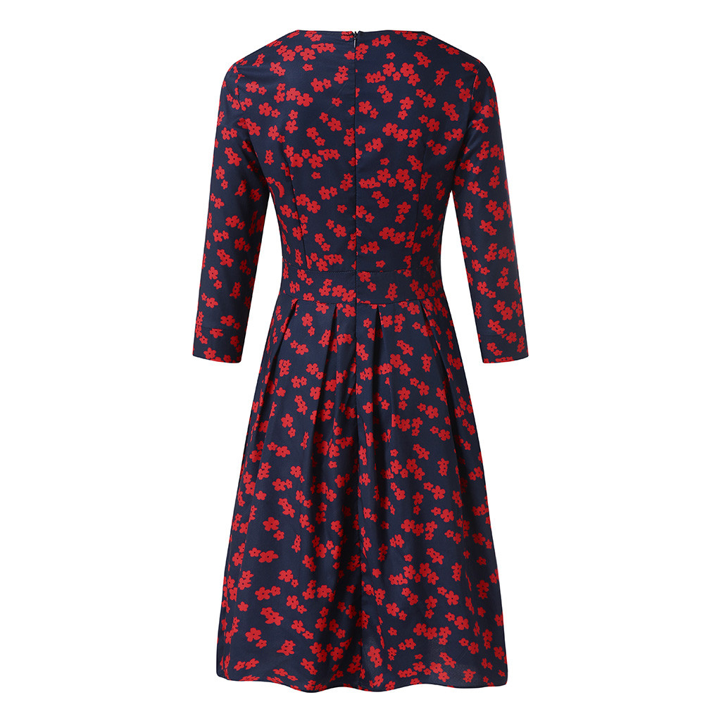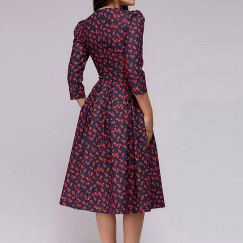 Women's Floral Vintage Dress Elegant Midi Evening Dress 3/4 Sleeves