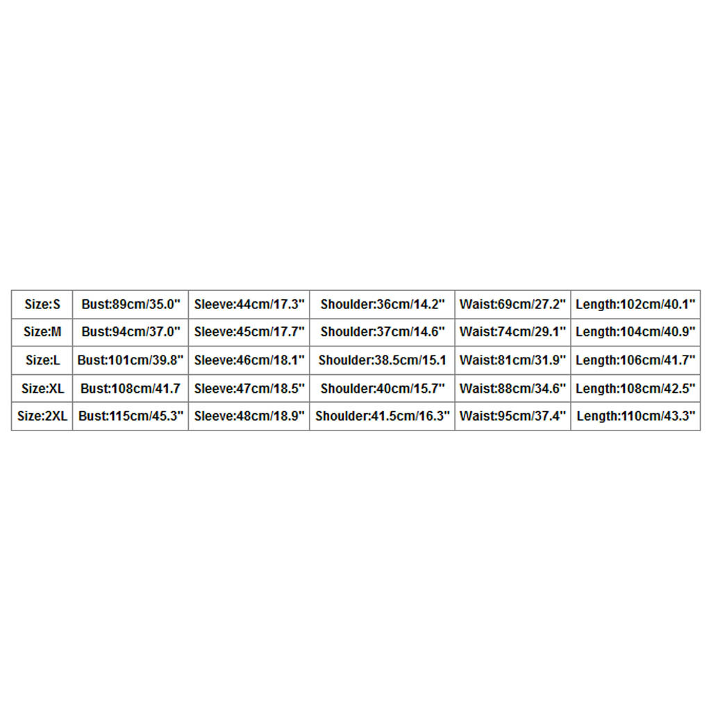 | Size | Bust | Sleeve | Shoulder | Waist | Length |