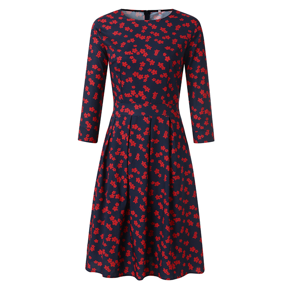 Best Chance for 2021 New Arrival Dress For Women's Floral Vintage Dress Elegant Midi Evening Party Dresses 3/4 Sleeves High Quality Женское
