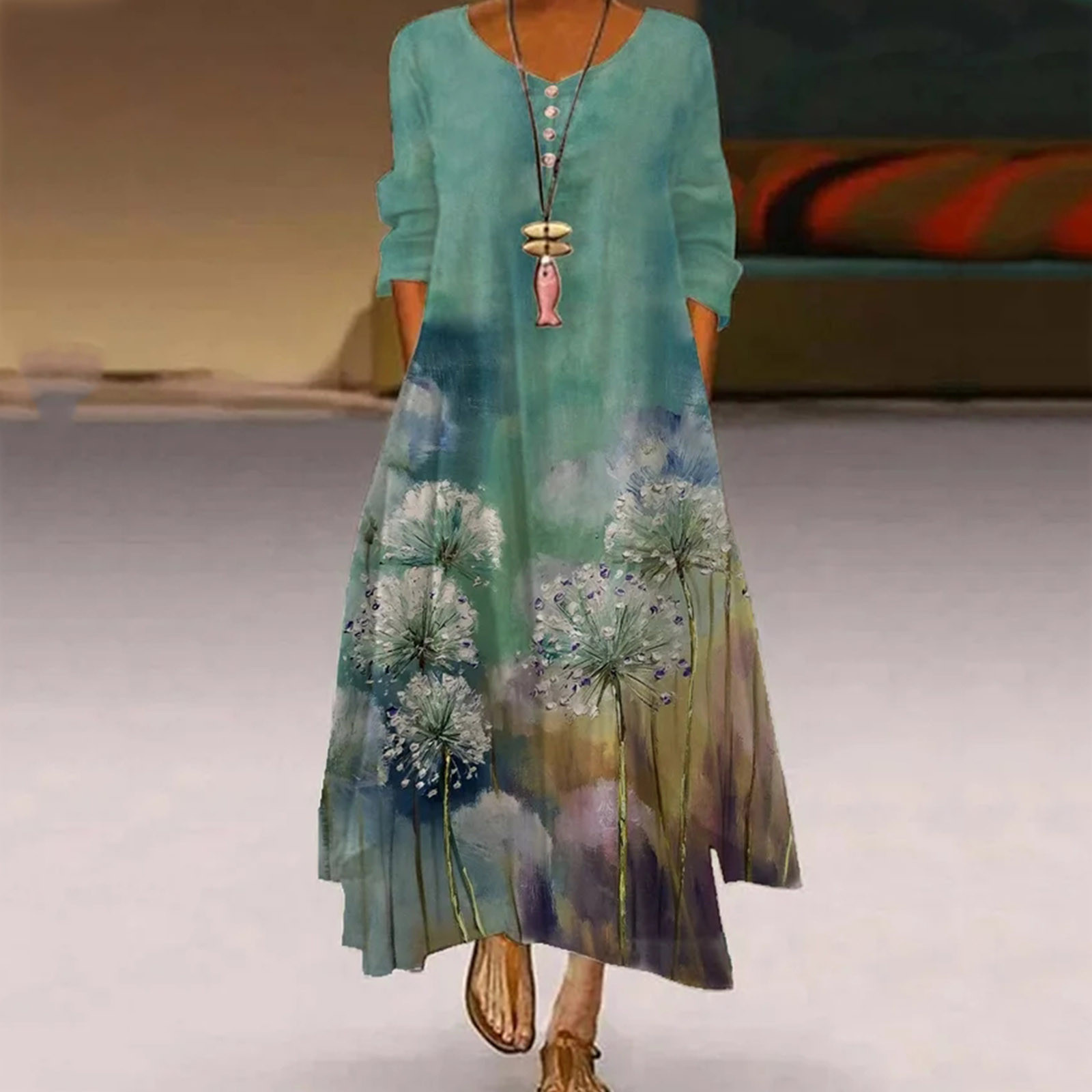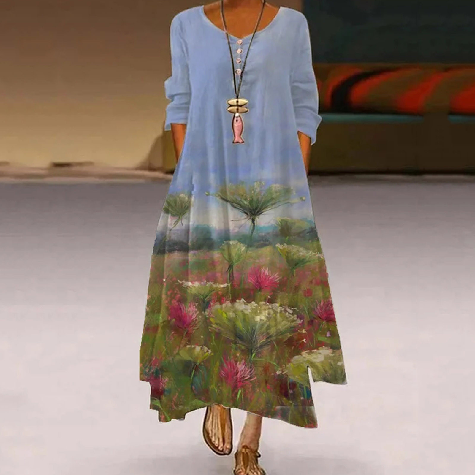 Dresses For Women Casual Plus Size Print Daily Dress Fashion Long Sleeve Vintage Bohemian O Neck Dress jurken zomer 2021 dames