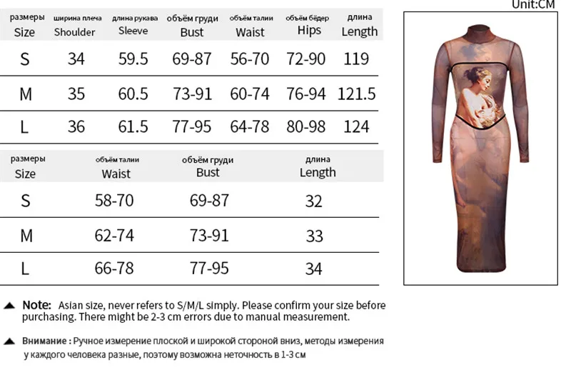 Addition Information of Hirigin Aesthetic Print Mesh Corset Bodycon Maxi Dresses Long Sleeve Women Sexy Hot See Through Clubwear Party Dress Brown Fall