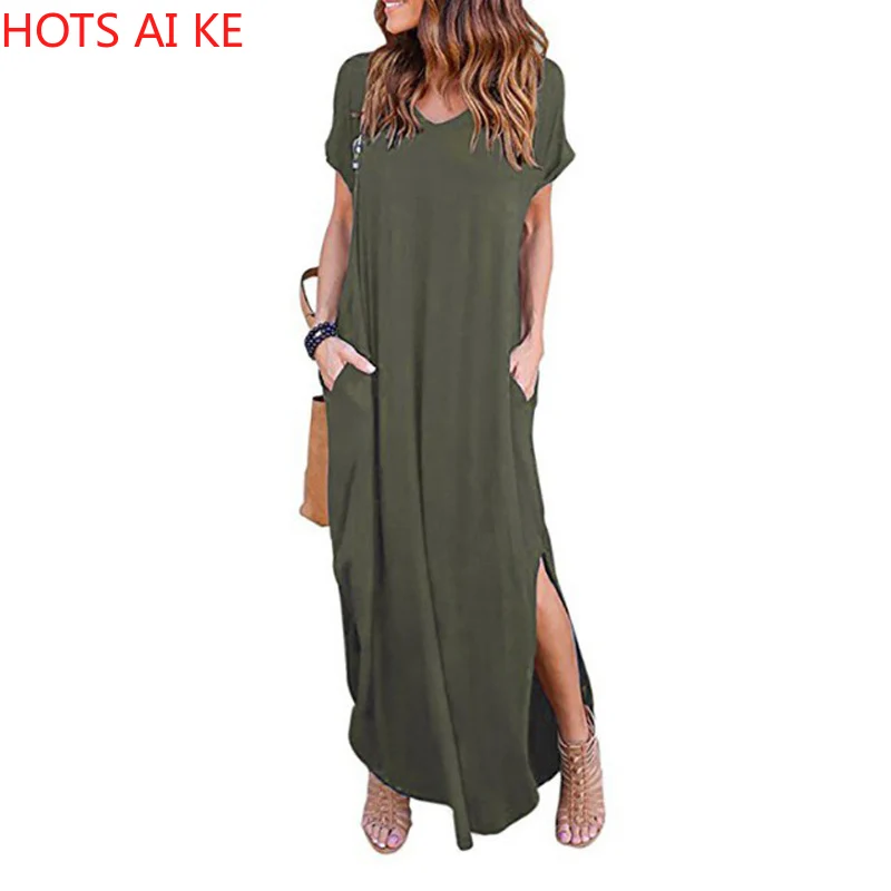 Plus Size 5XL Sexy Women Dress Summer 2020 Solid Casual Short Sleeve Maxi Dress For Women Long Dress
