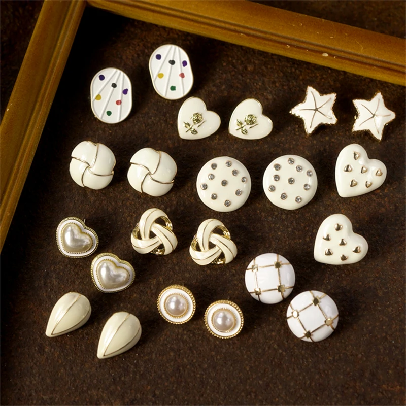 HUANZHI 2020 New Vintage Elegant Dripping Oil Water Drop Love Star Zircon Pearl Irregular Stud Earring for Women Dress Jewelry