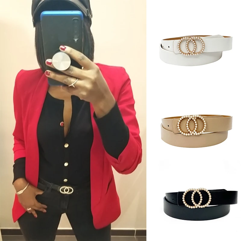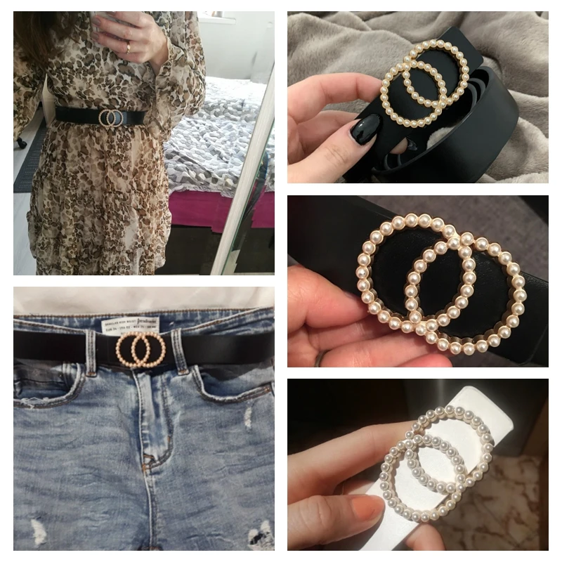 0 Response to "Leather Belt Women Waist Luxury Black Red Belts for Jeans Dresses Woman Pearl Studded Buckle Girls Ladies Fashion Decorative"