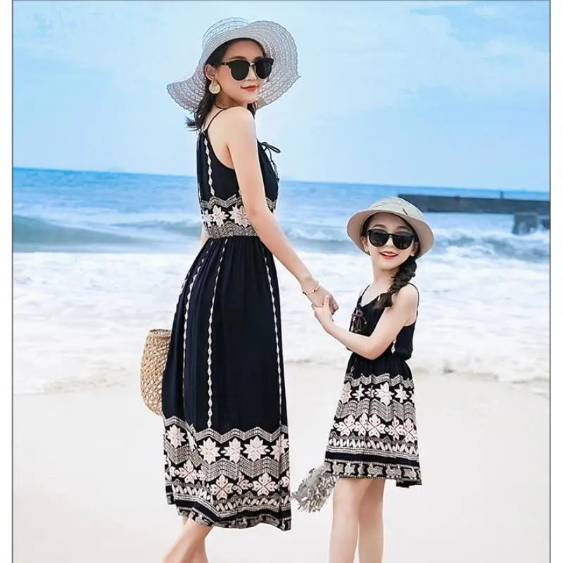 Related Product for long maxi dresses for women and Parent-child Summer Dress Boho Style Floral Print Beach Dress Long Maxi Evening Party Beach Dress Vestidos Plus Size