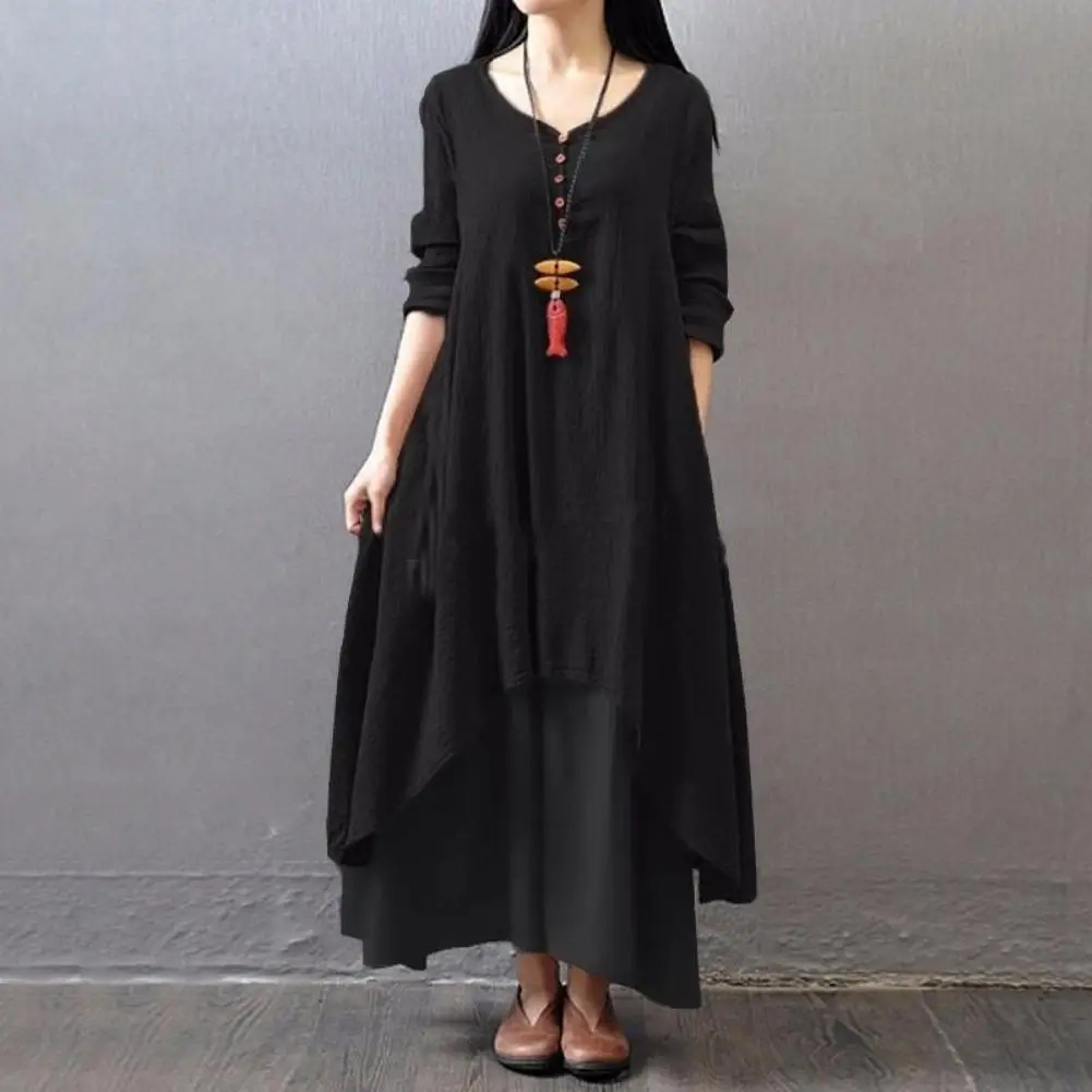Related Product for plus size women dress vintage and Plus Size Oversized Women Solid Color Long Sleeve Baggy Loose Layered Maxi Dress