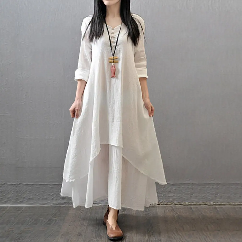 Elegant Style Women Vintage Dress Irregular Hemline Comfortable Cotton Long Sleeve Solid Color For Dating Leisure Daily Wear hot