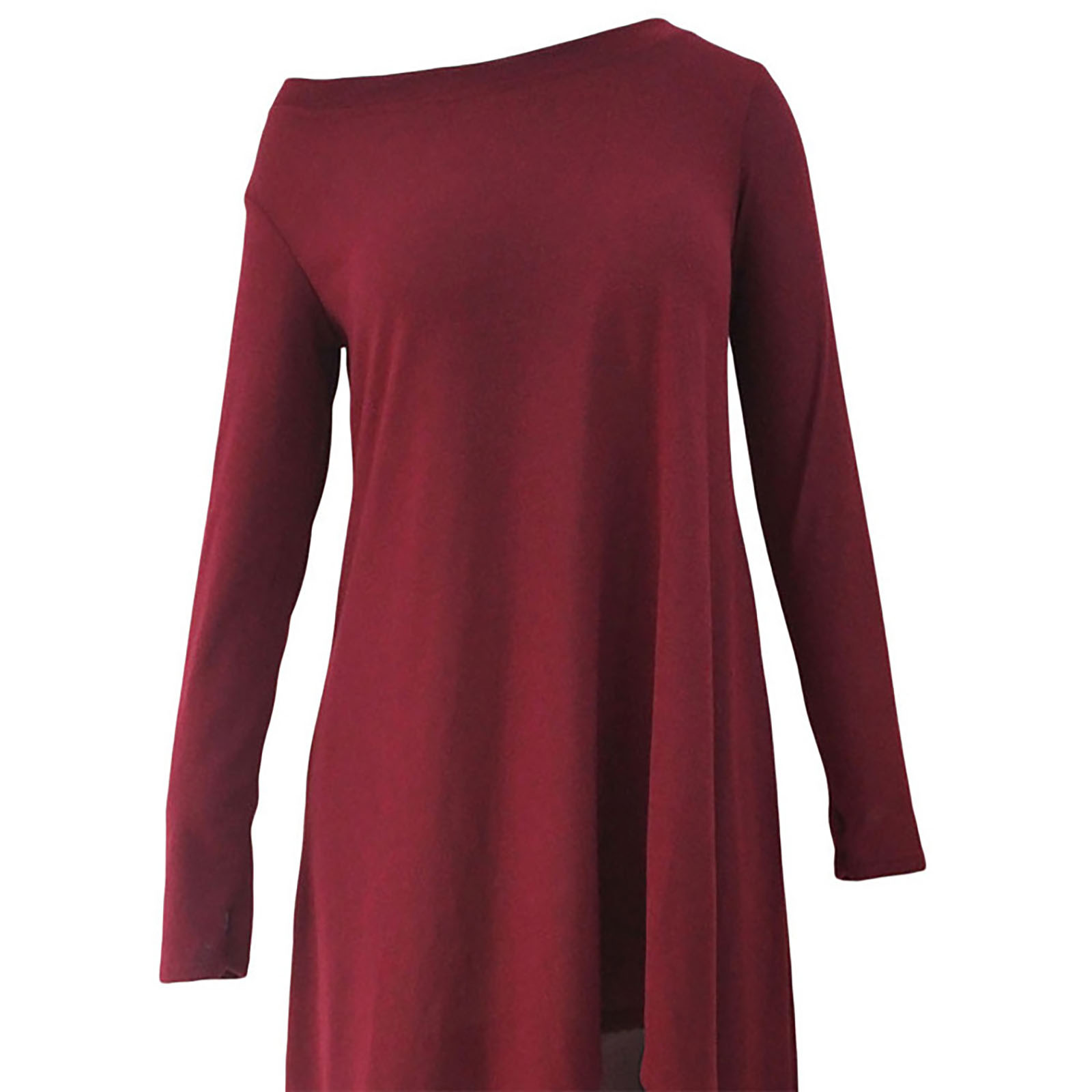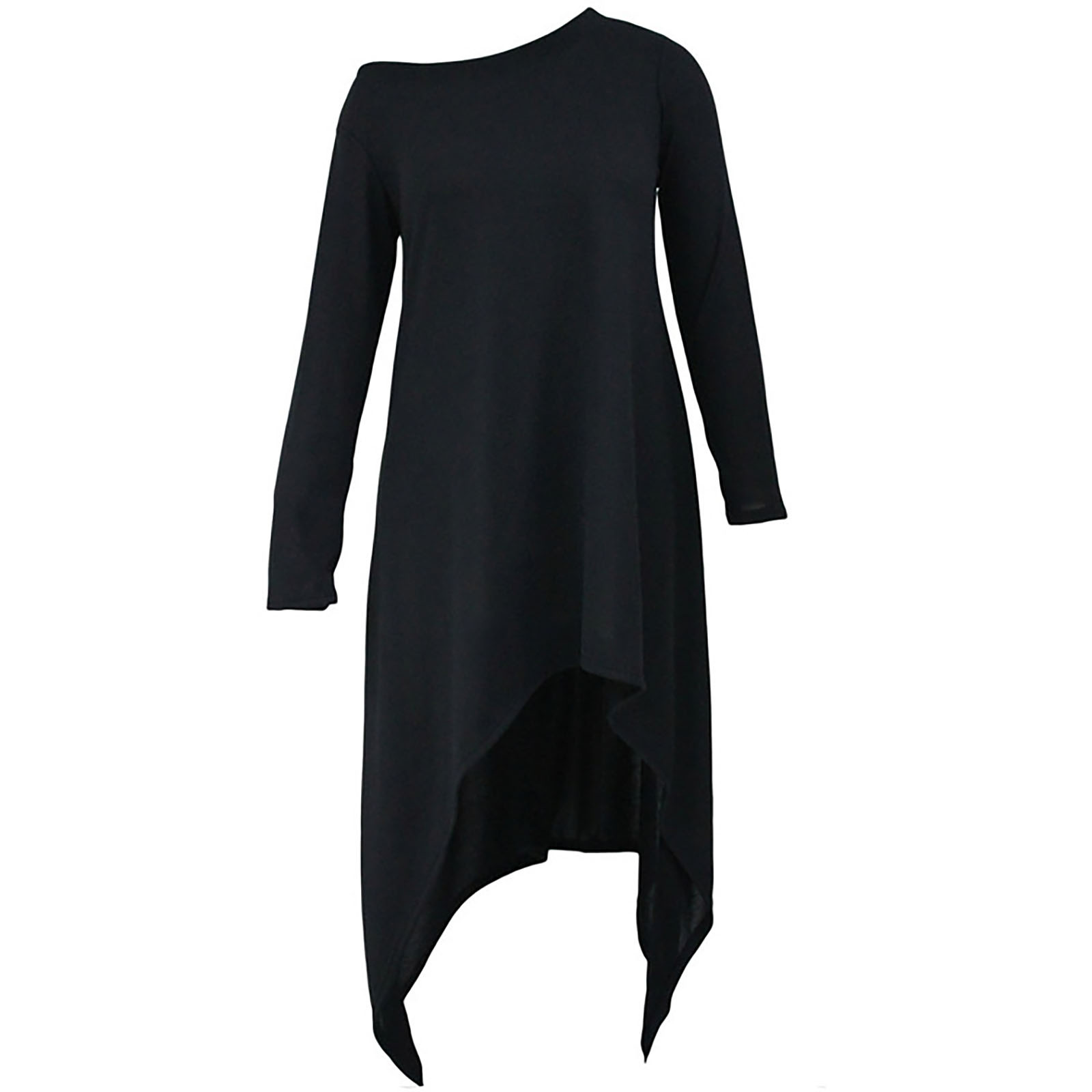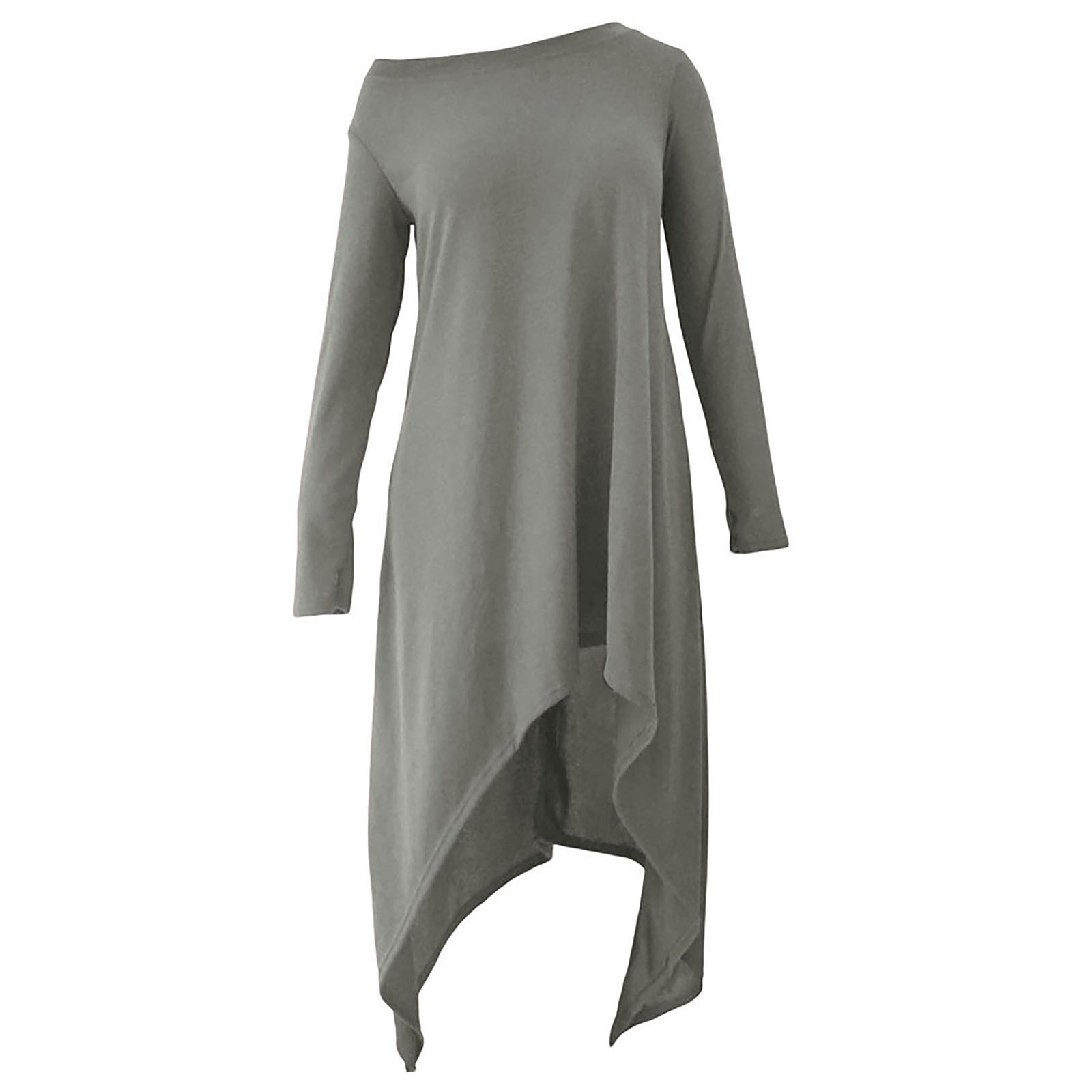 Women's Fashion Long Sleeve Cotton Slant Collar Irregular Hem Long T-shirt Dress