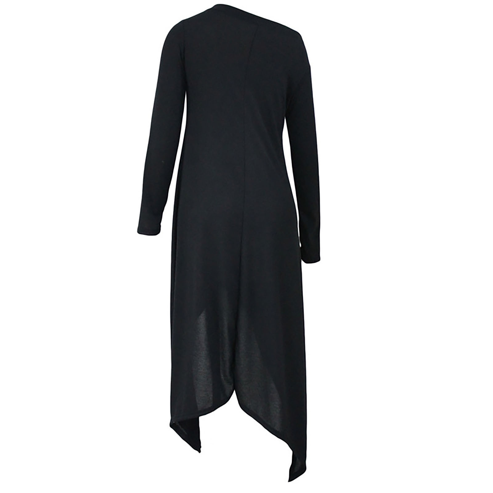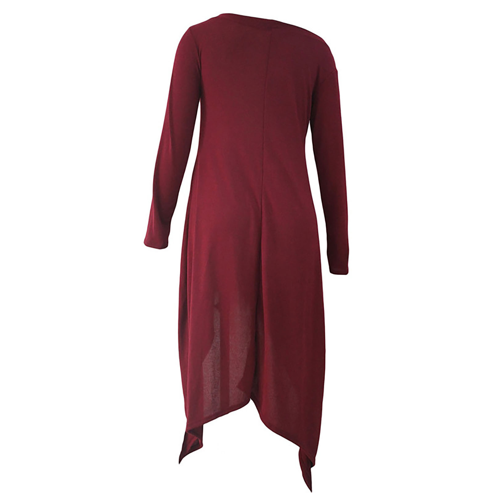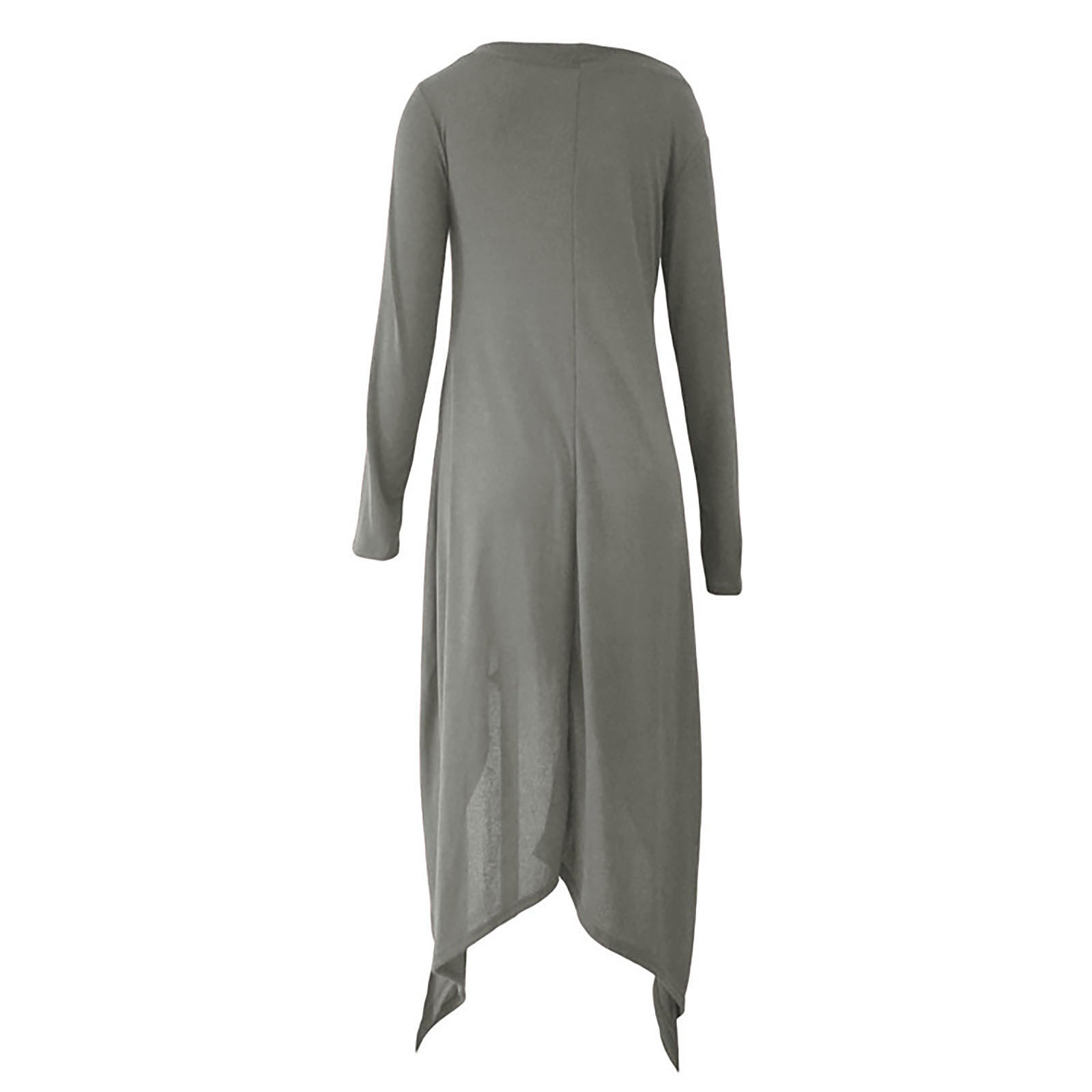 Women's Fashion Long Sleeve Cotton Slant Collar Irregular Hem Long T-shirt Dress