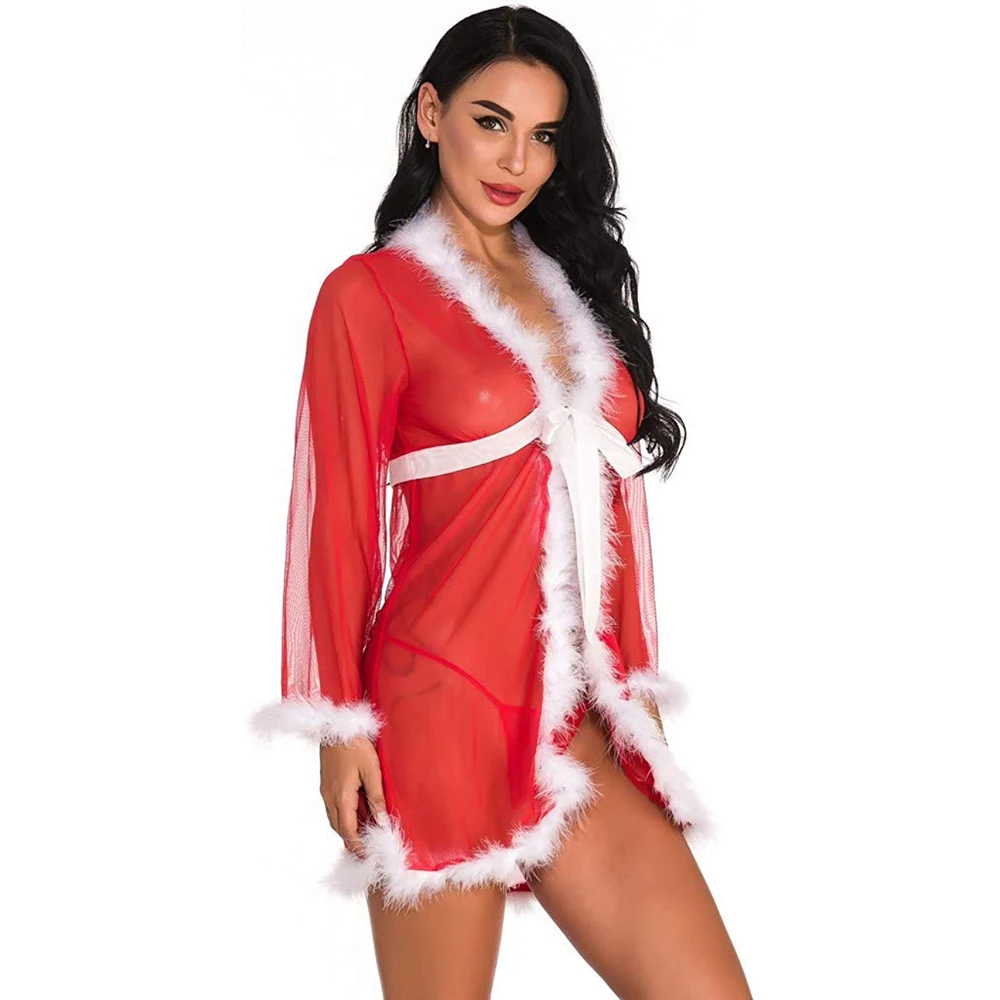 Limited Price for Sexy New Christmas Womens Sexy Lingerie Robes Dresses Feathers Bandage Sleepwear Babydoll Xmas Bodysuit Nightwear Nightdress