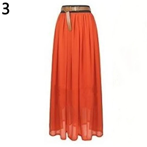 Addition Information of Summer Autumn Women Double Layer Chiffon Pleated Retro Long Maxi Dress Elastic Waist Skirt
