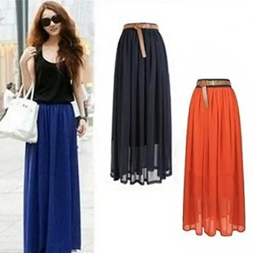 Related Product for long maxi dresses for women and Summer Autumn Women Double Layer Chiffon Pleated Retro Long Maxi Dress Elastic Waist Skirt