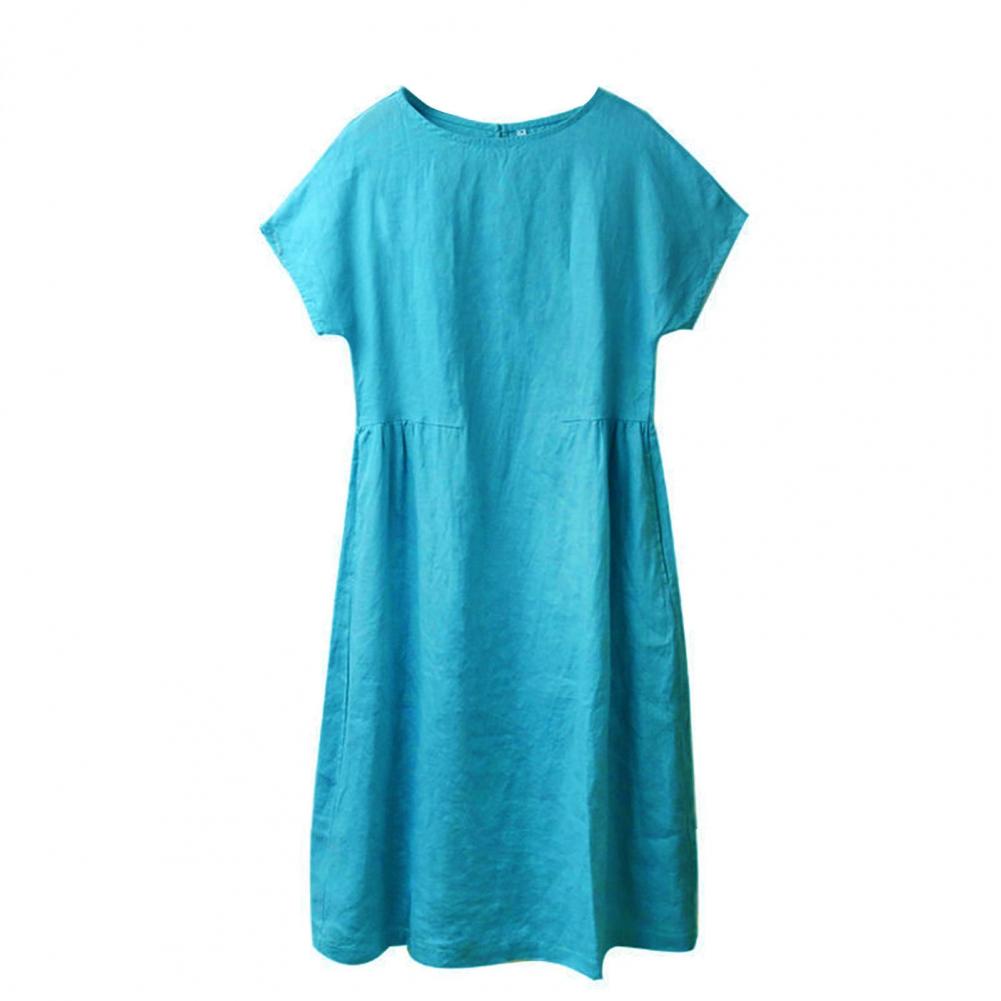 Buy Women Dress Solid Color Large Hem Short Sleeve Pockets Loose Midi Dress for Work and You will Save USD 1.93 or 49% %, Becuase You Just Pay for 2.00 not Full Price for 3.93