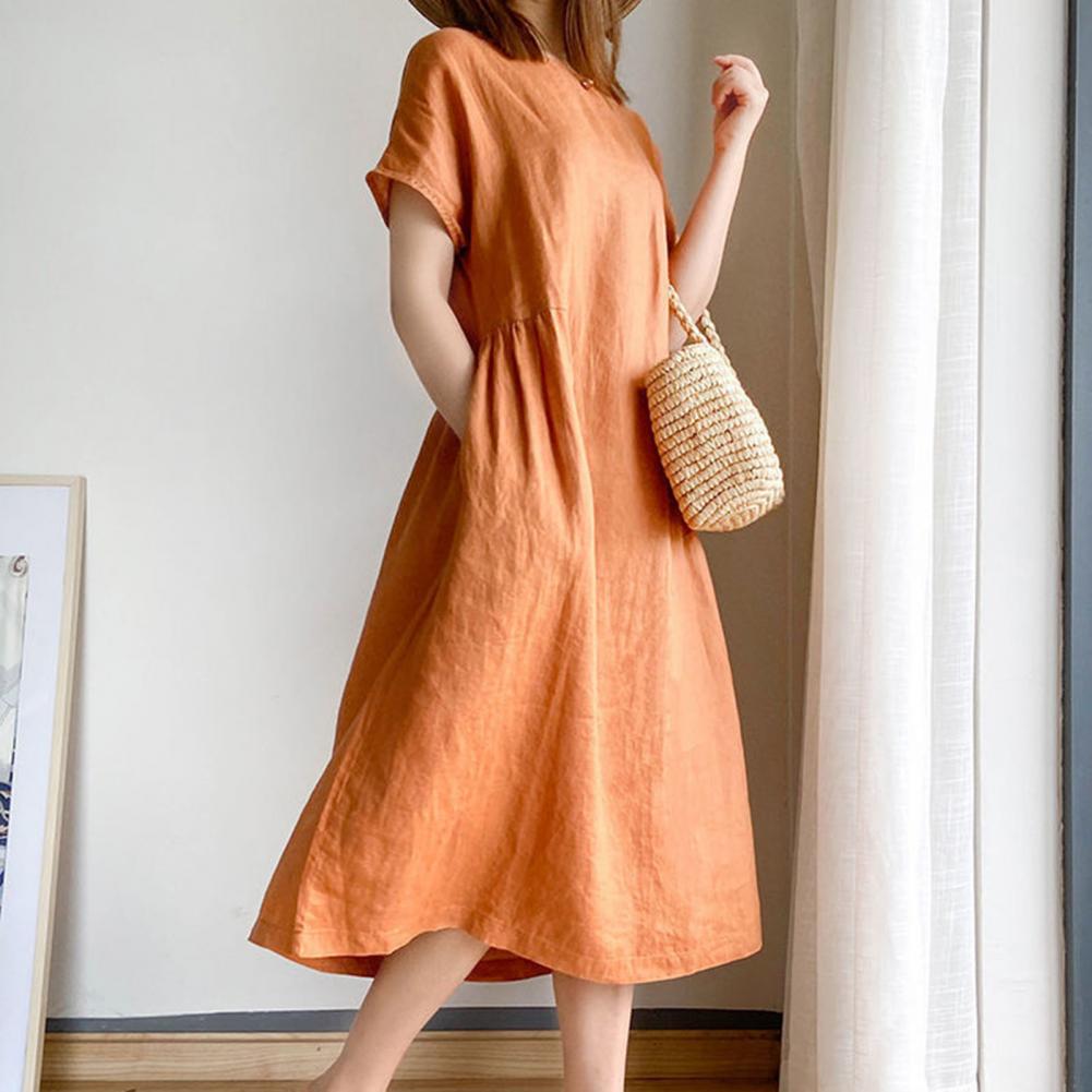 Buy Women Dress Solid Color Large Hem Short Sleeve Pockets Loose Midi Dress for Work Big Pockets Beach Party Robe Femme Vestidos Right Here and Right Now and You will save USD 1.14 or 29%%, Because price is will changed at any time without notice, or stock may be run out, If You Buy Now You Just Pay For 2.80, not in Reguler Price at 3.94. Yap! This is I mean you will Save 29% % / USD 1.14