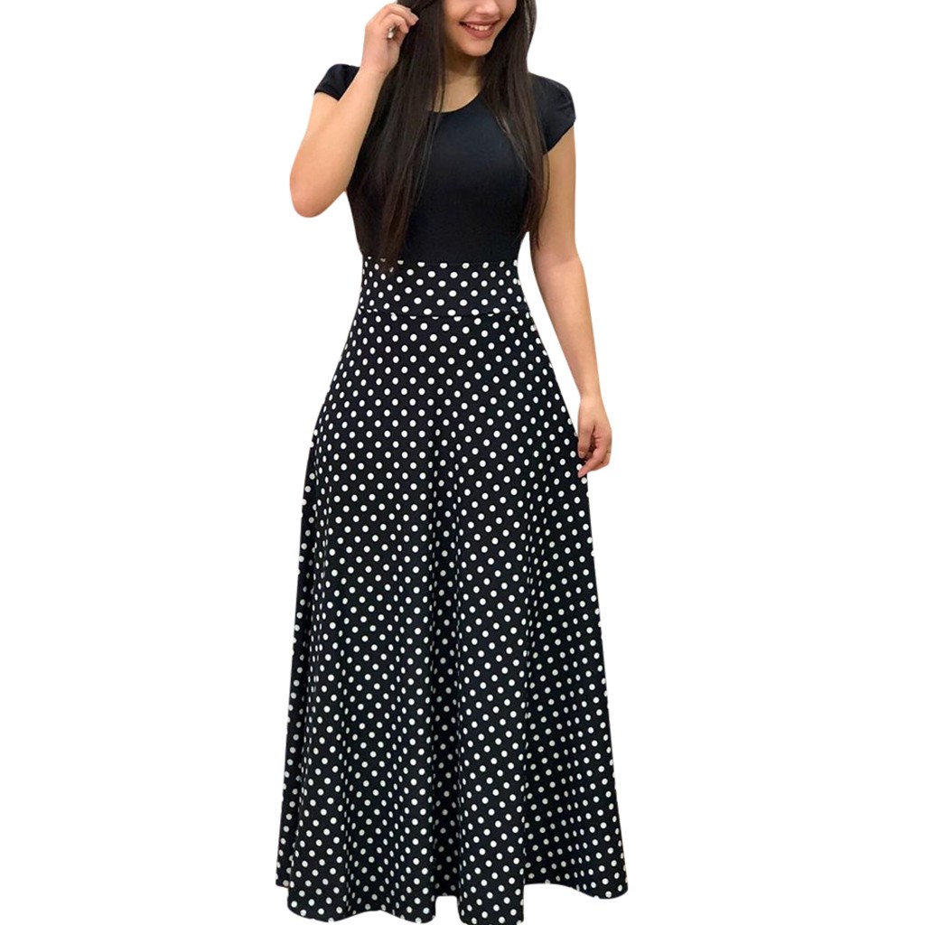 It is your very own era to feign reviewing habit. accompanied by guides you could enjoy now is Women's Ladies Short Sleeve Colour Splicing Wave Point Cocktail Party Dress Dress Fashion Women Casual O-neck Hollow Out Sleeve.