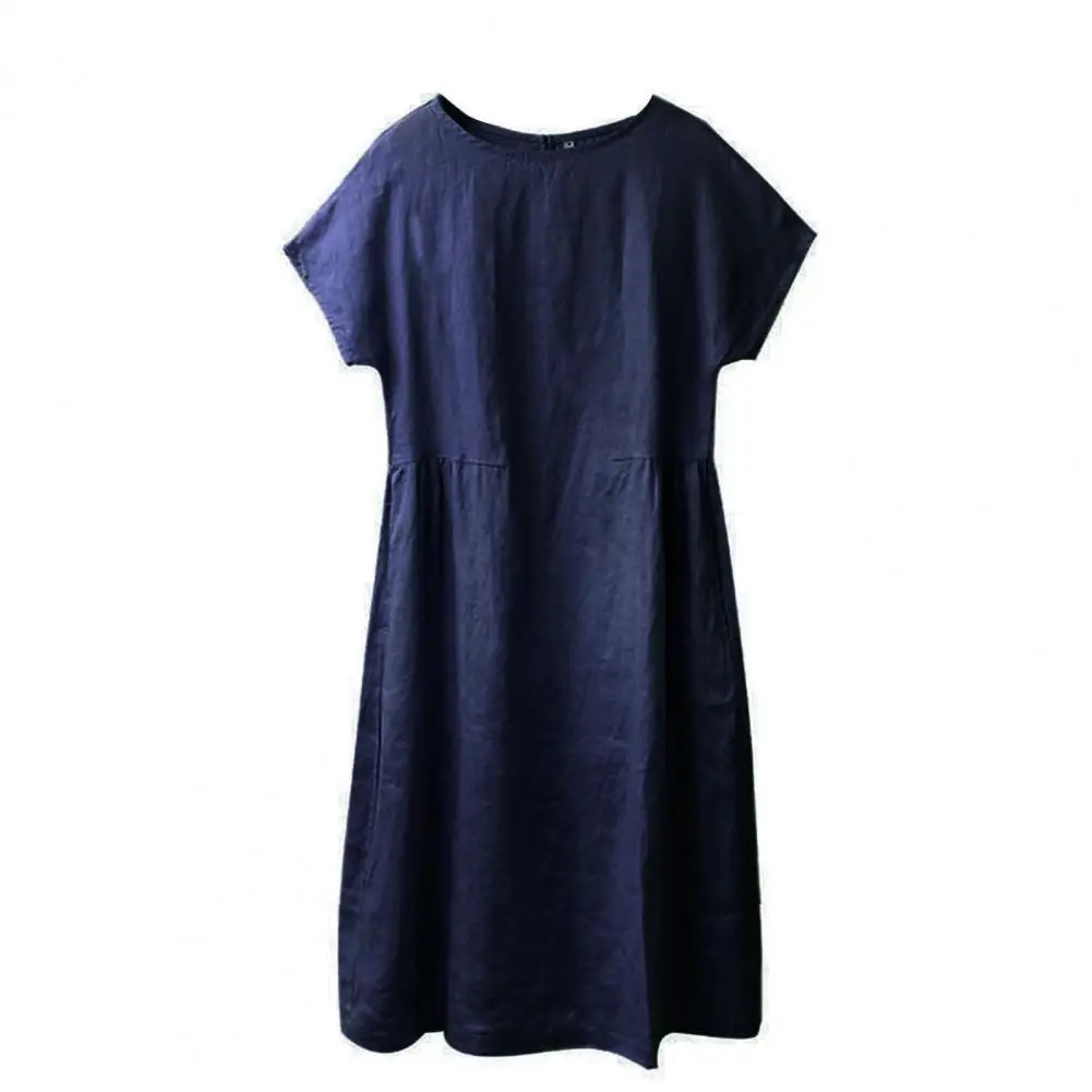 Stylish O Neck Dresses Summer Women Dress Solid Color Large Hem Short Sleeve Pockets Loose Midi Dress for Work Women Party