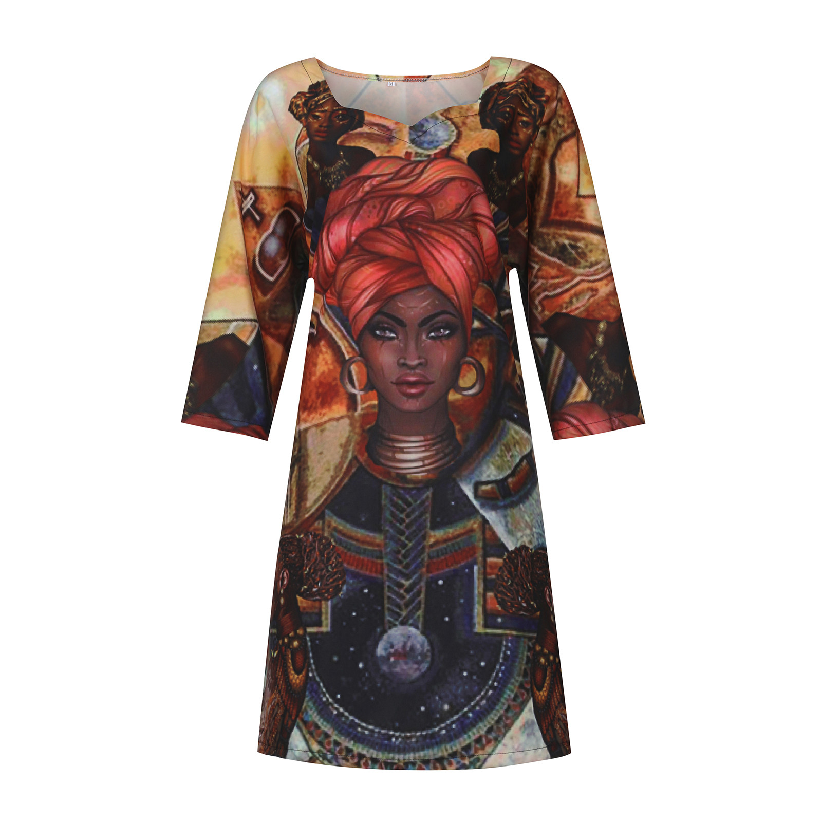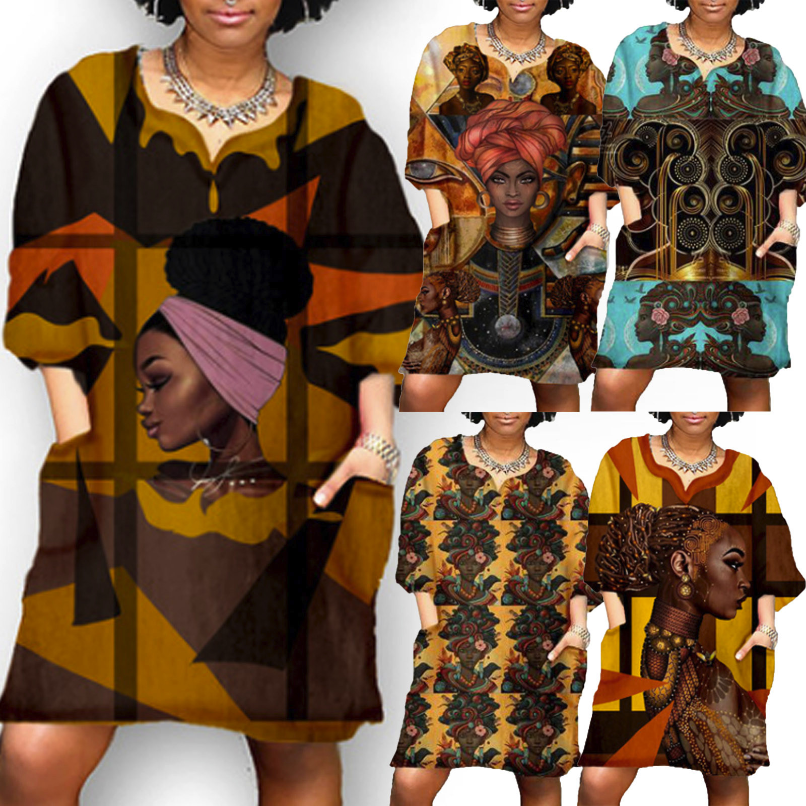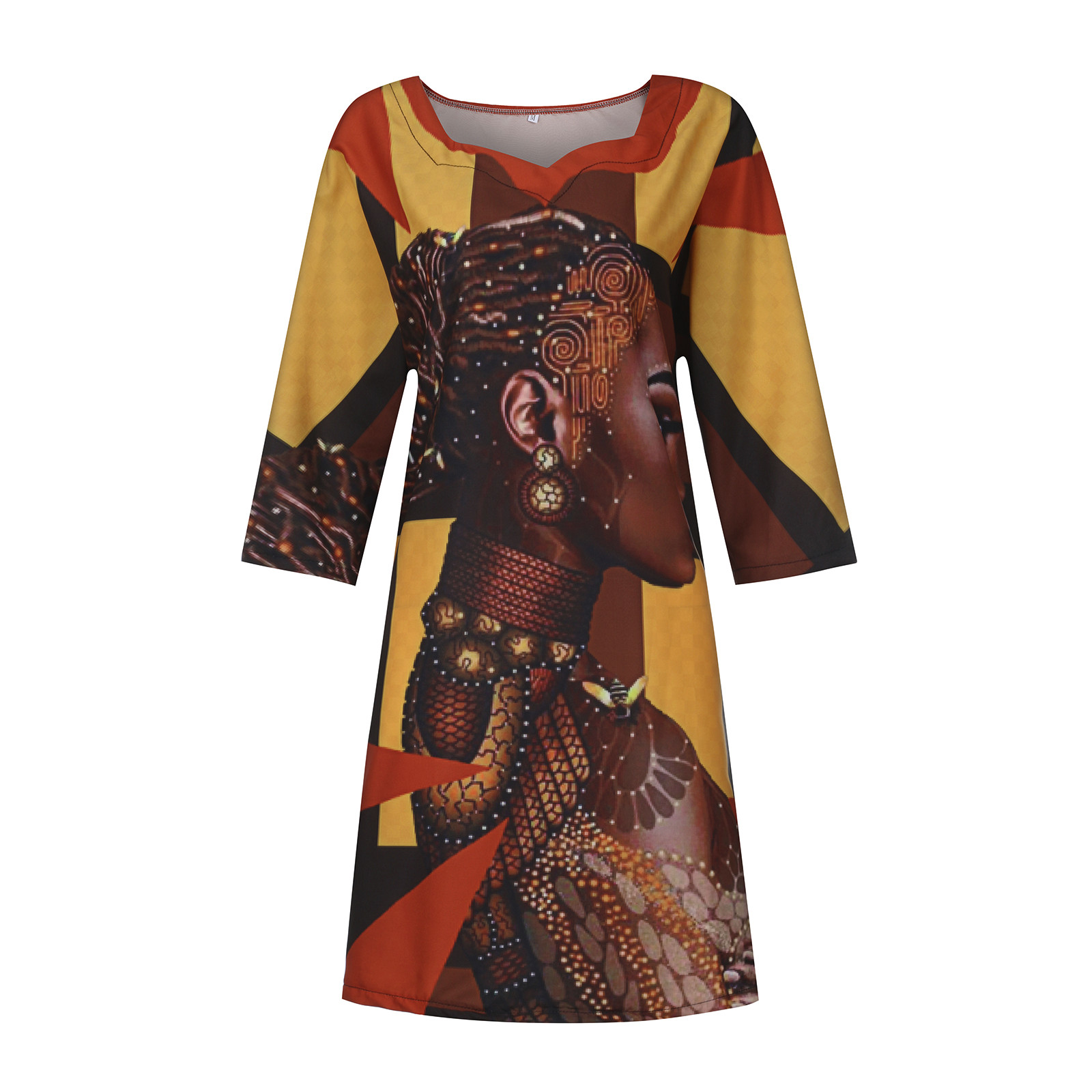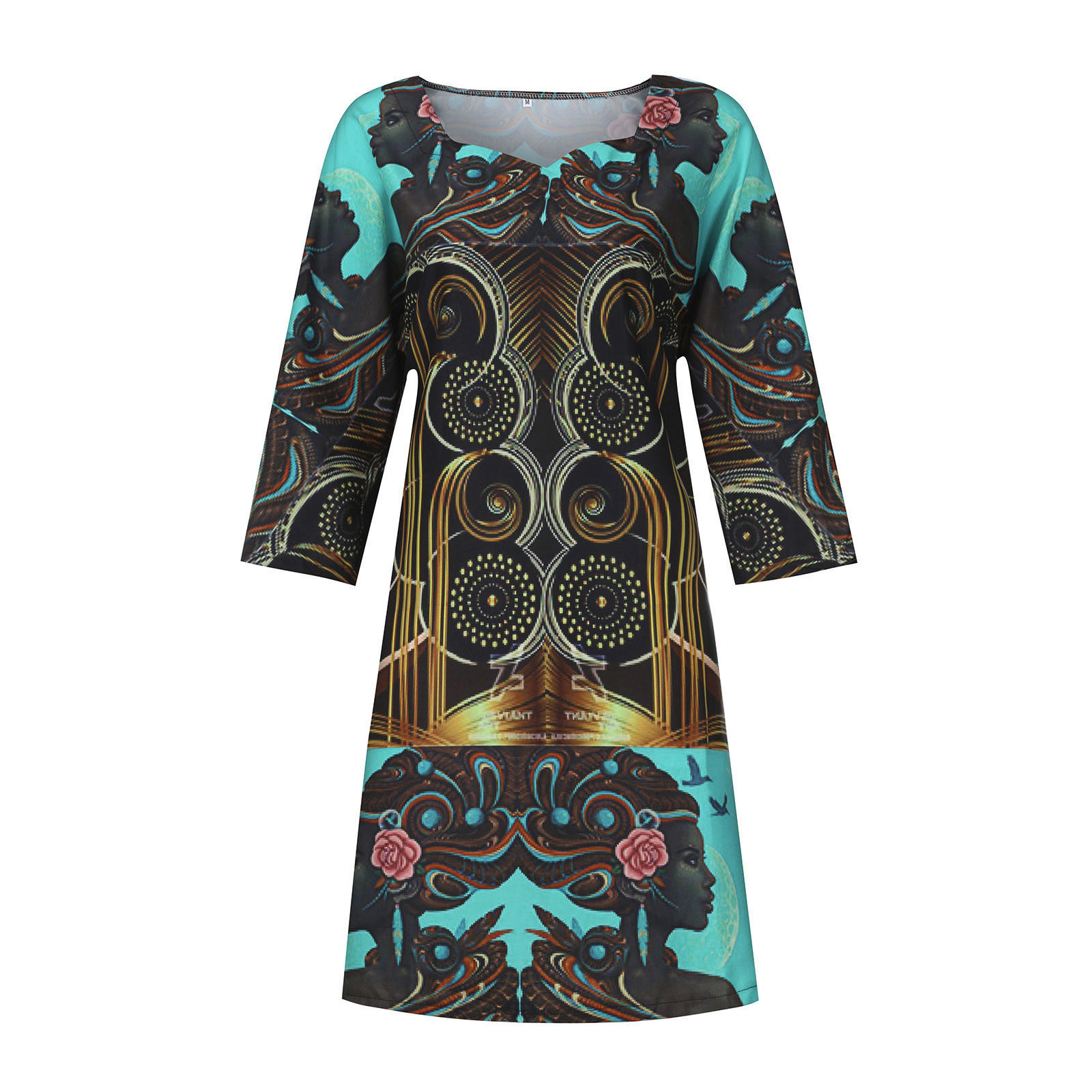 Related Product for plus size women dress vintage and 2021 Fashion Women African Vintage Print Middle Sleeve Dresses Ladies Casual Plus Size V-Neck Loose Mini Dress женское платье