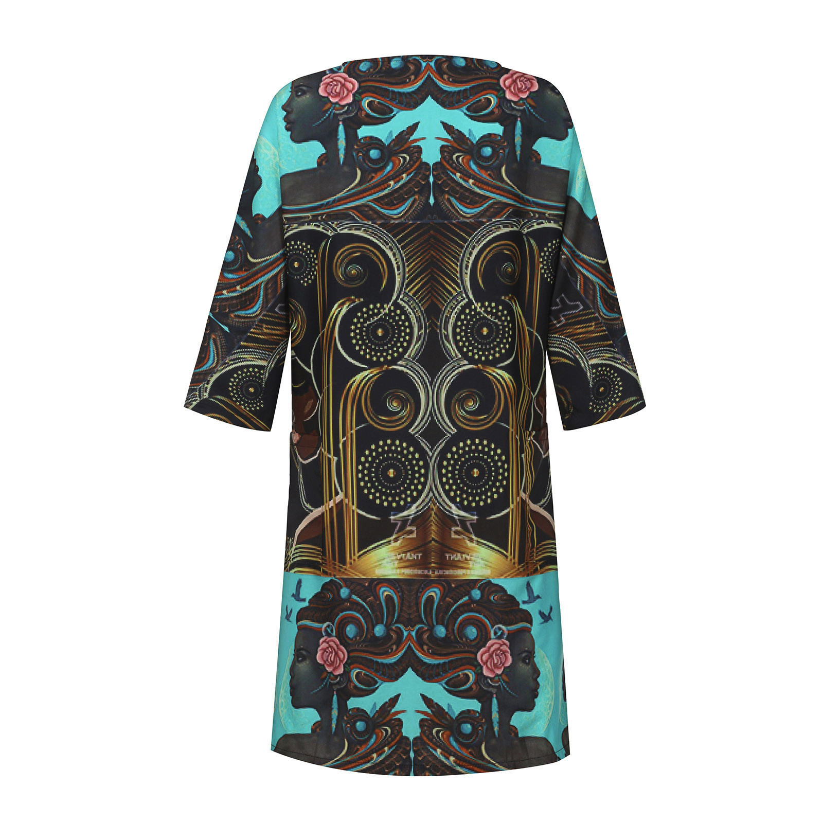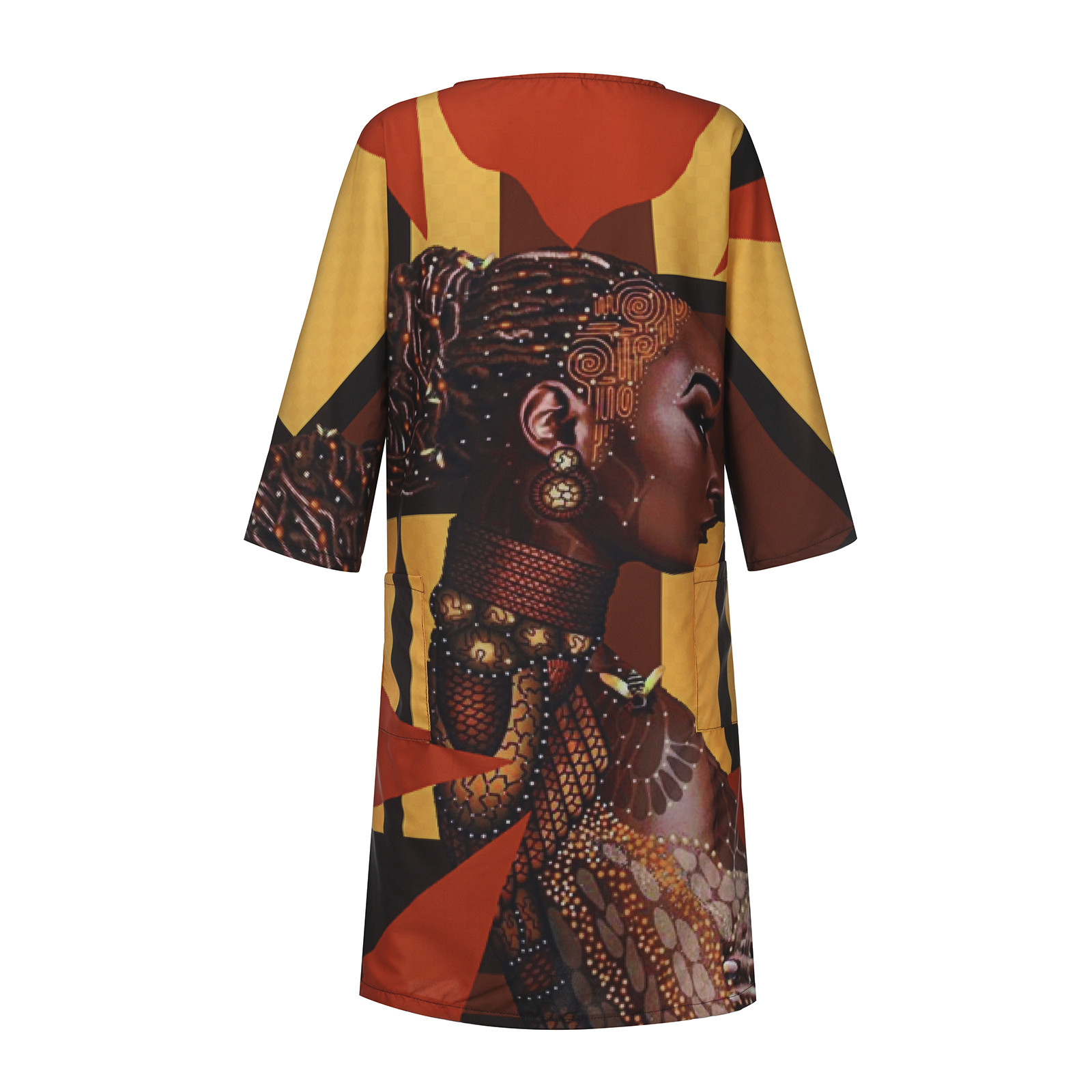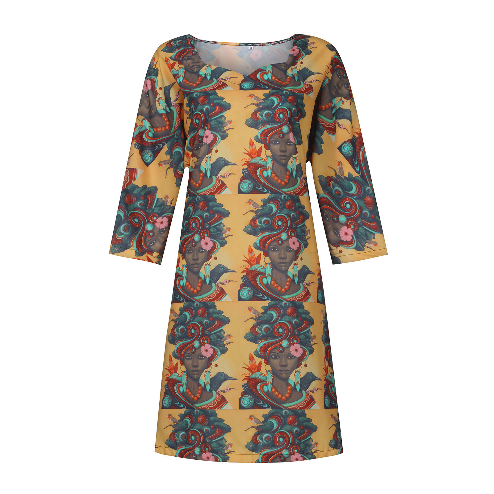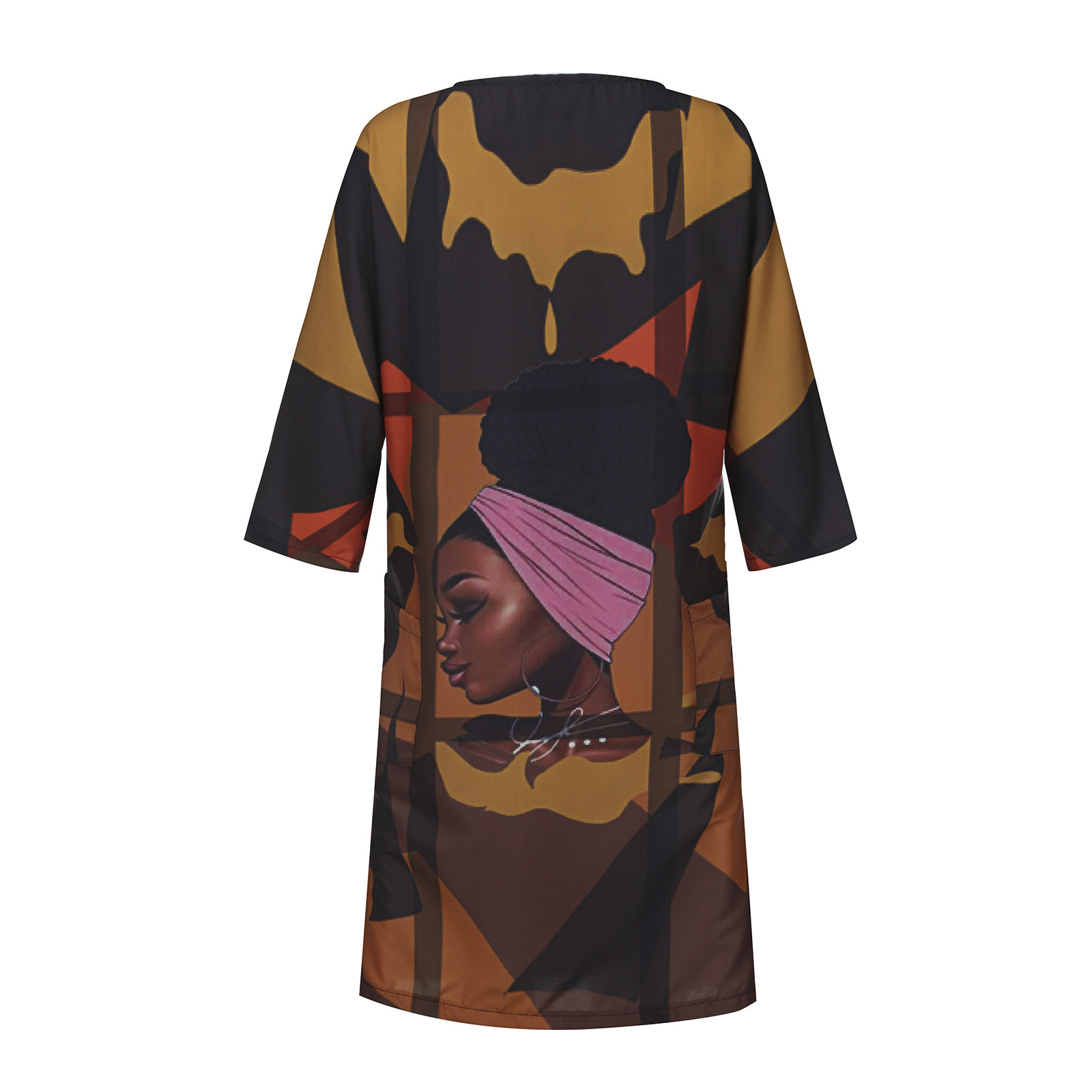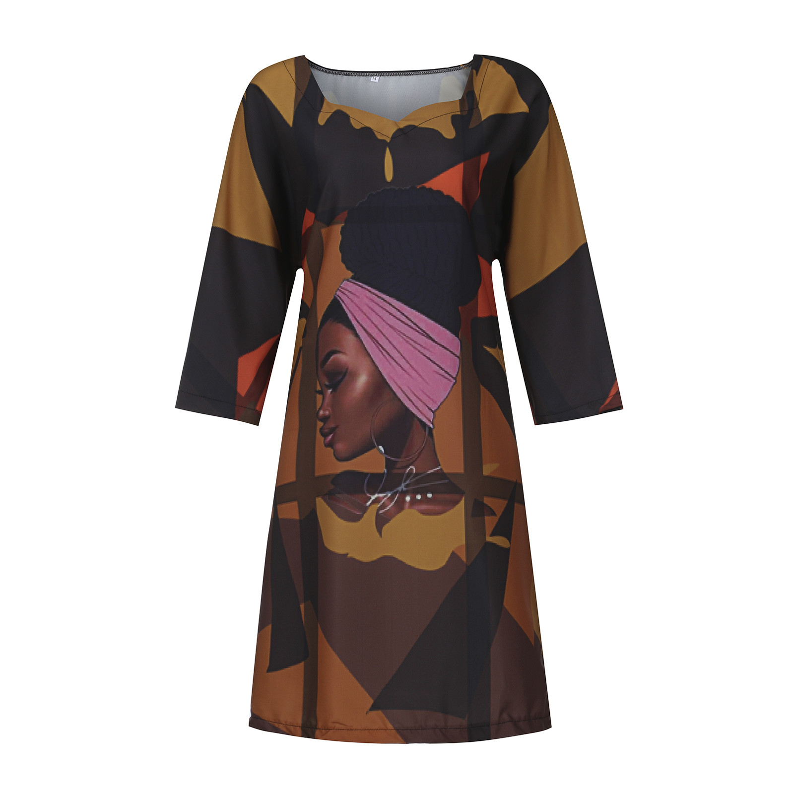 Related Product for plus size women dress vintage and 2021 Fashion Women African Vintage Print Middle Sleeve Dresses Ladies Casual Plus Size V-Neck Loose Mini Dress женское платье