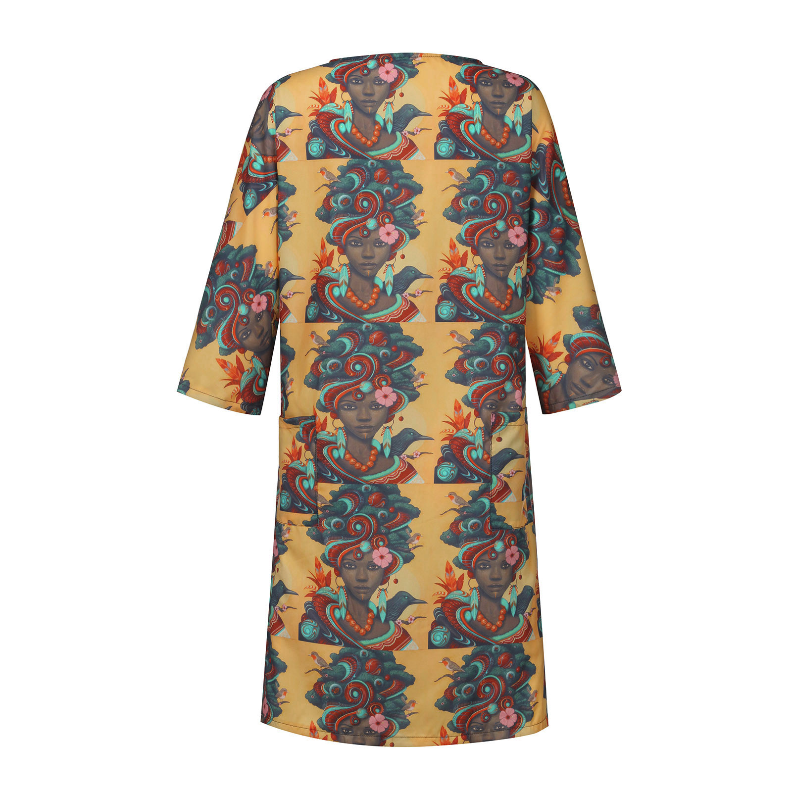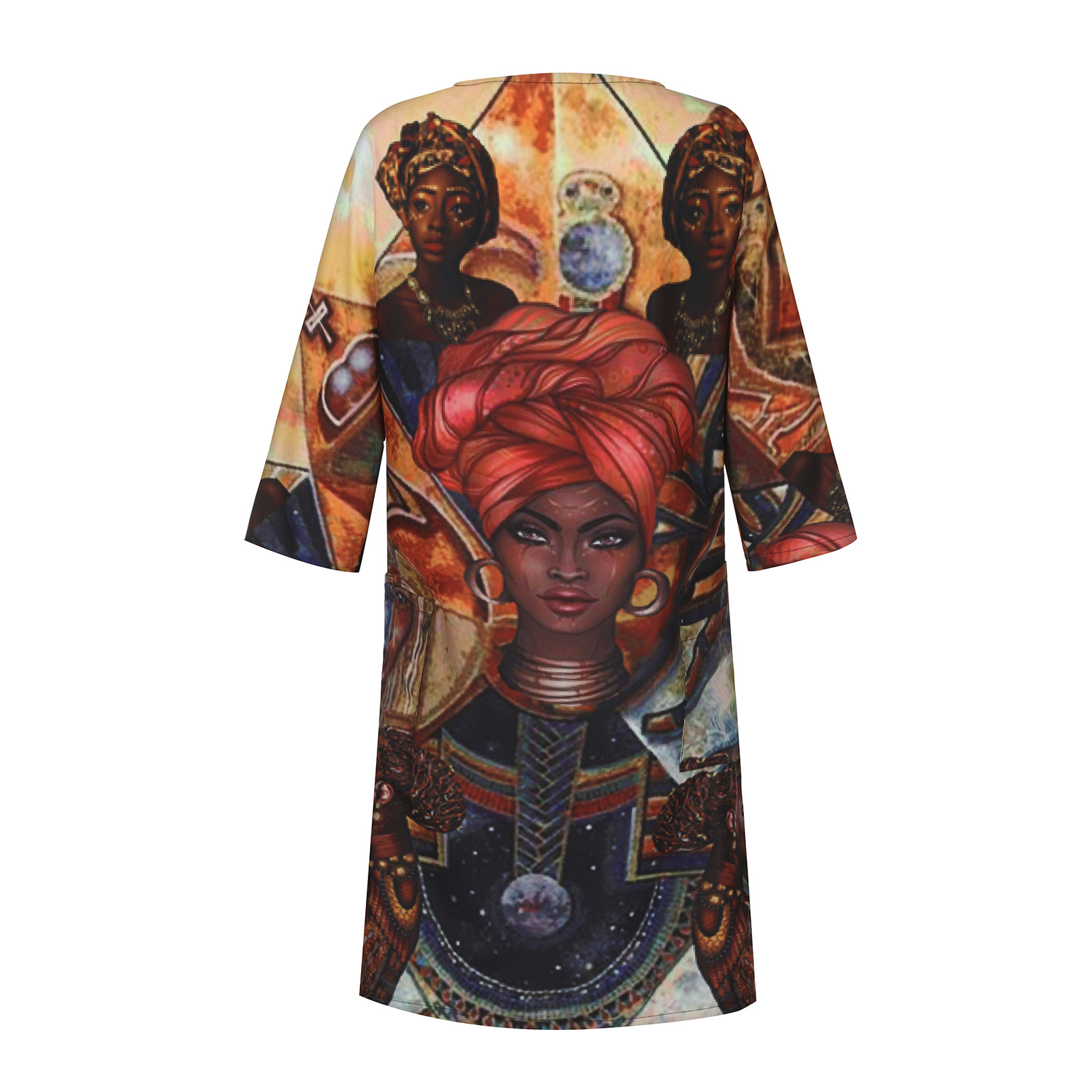 0 Response to "2021 Fashion Women African Vintage Print Middle Sleeve Dresses Ladies Casual Plus Size V-Neck Loose Mini Dress женское платье"