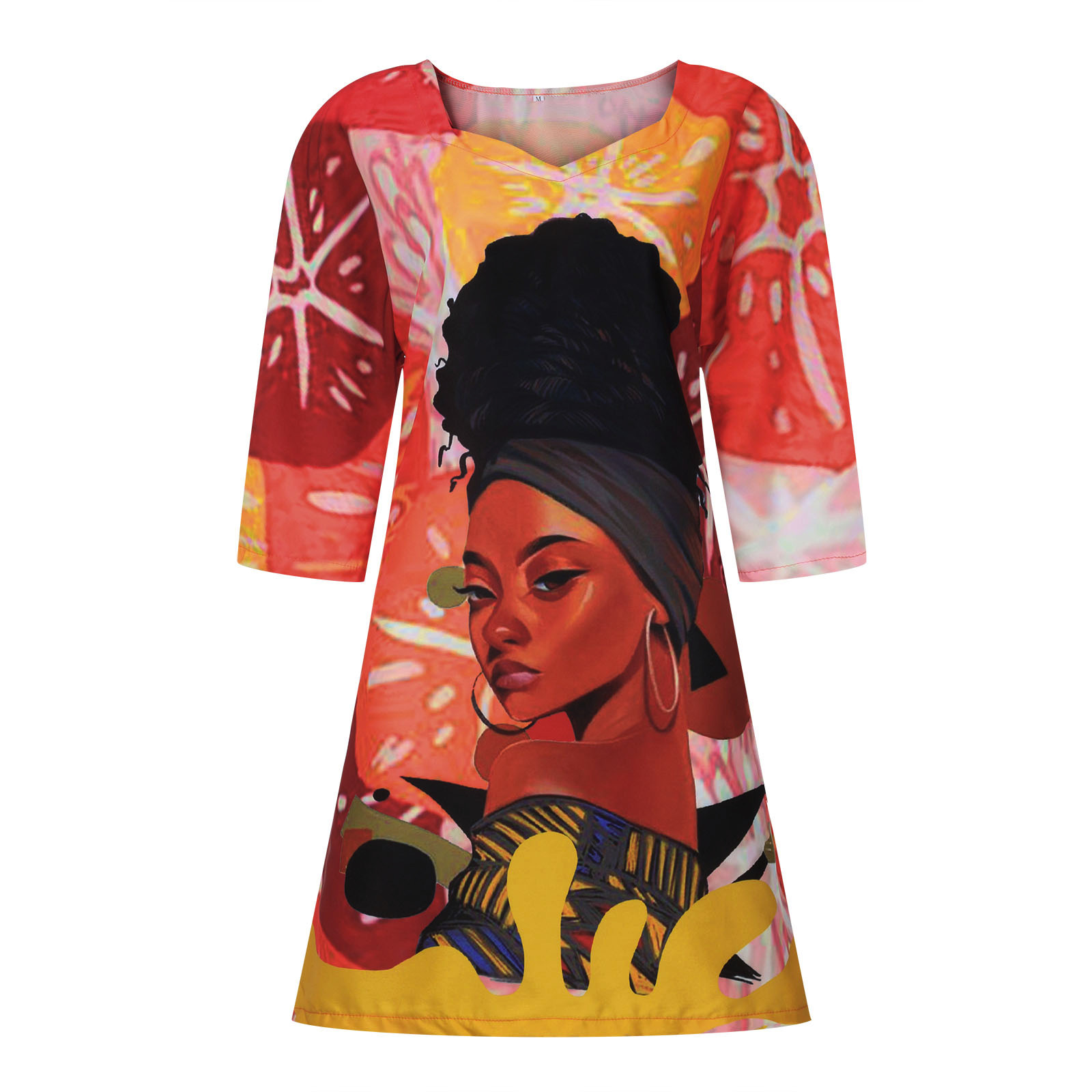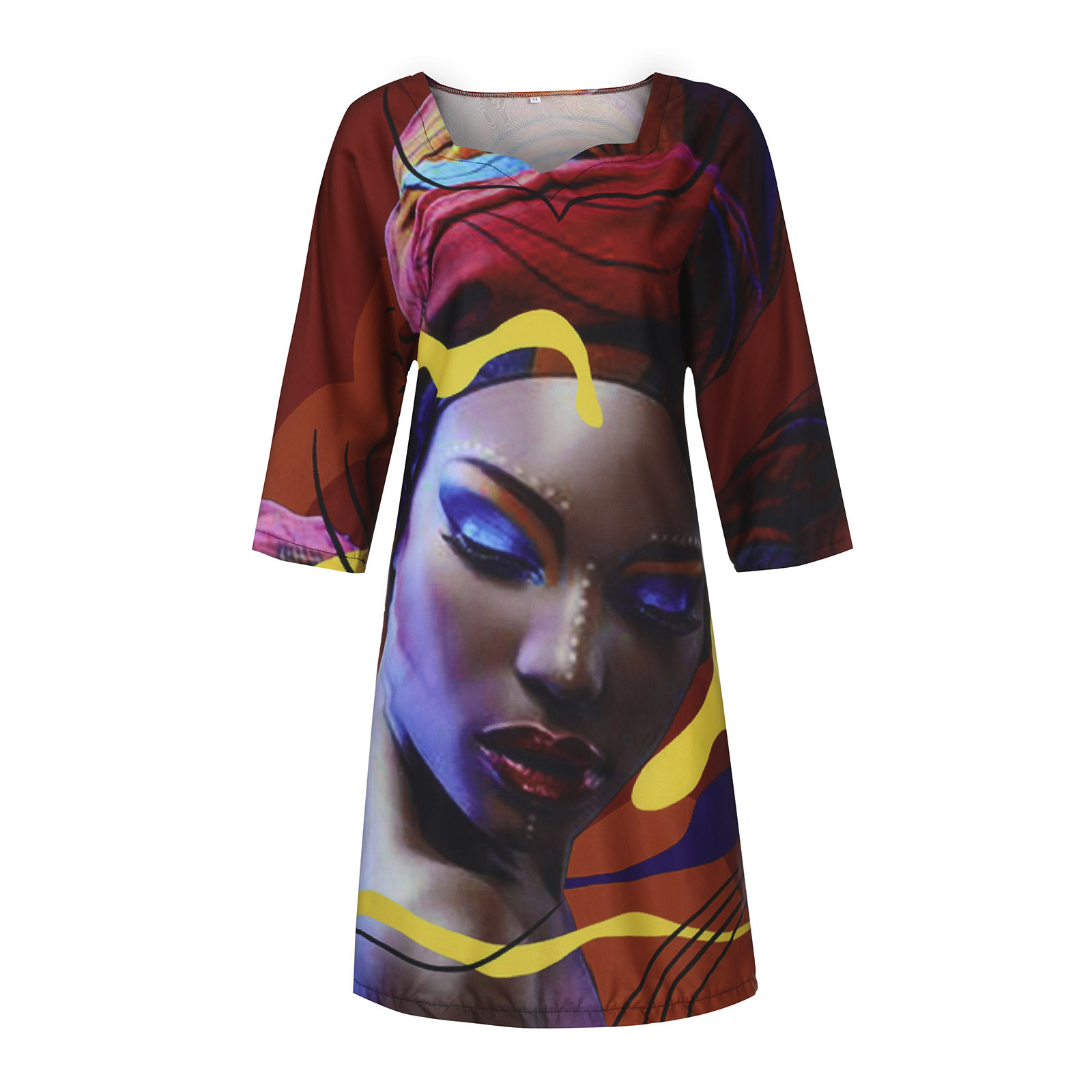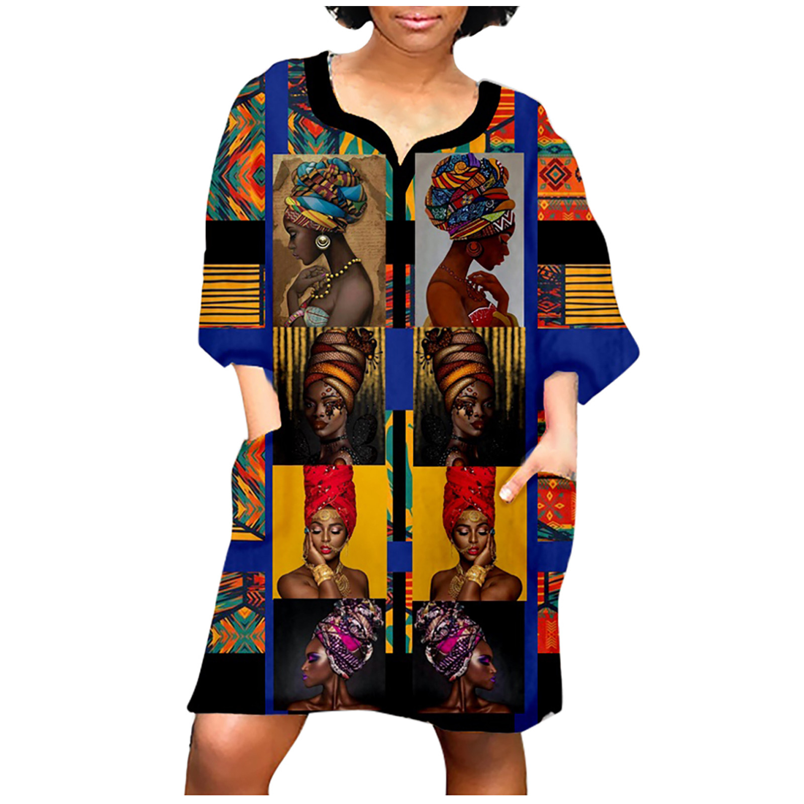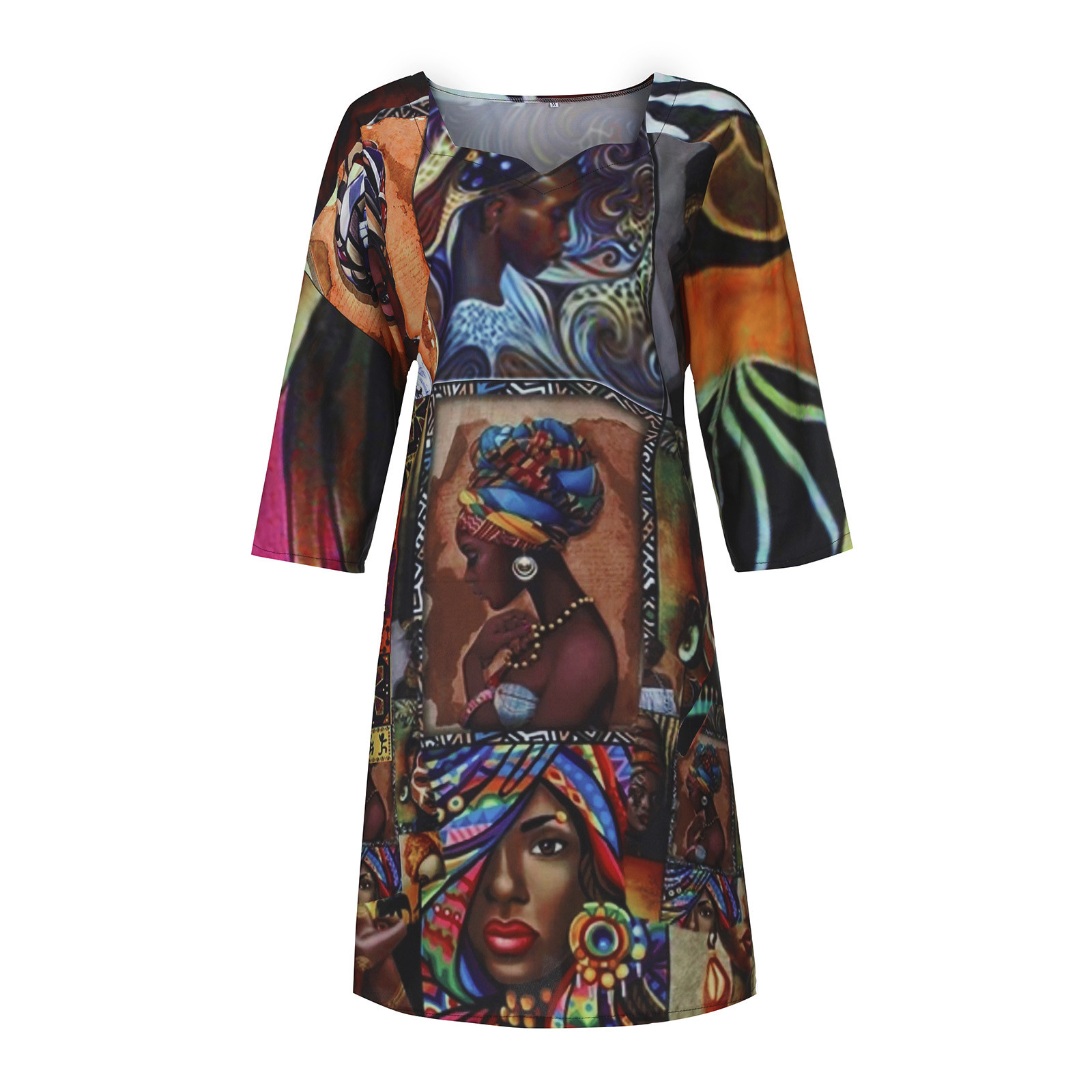 Related Product for plus size women dress vintage and 2021 Women Fashion African Vintage Print Middle Sleeve Dresses Ladies Casual Plus Size V-Neck Loose Mini Dress женское платье