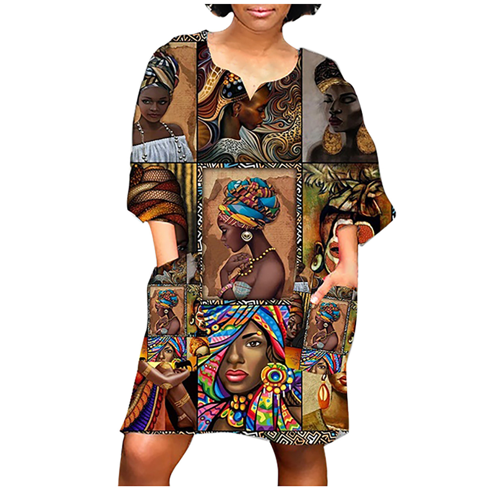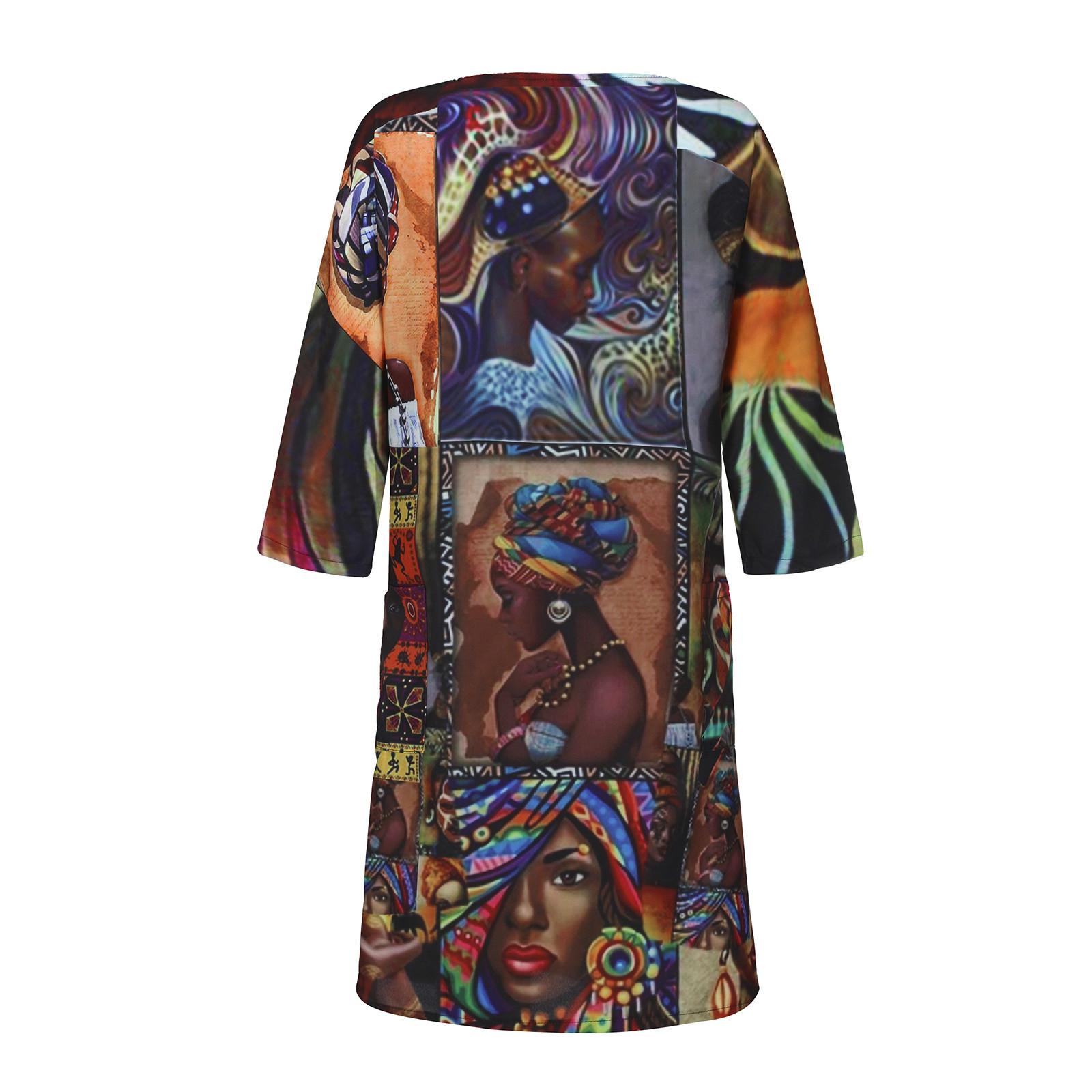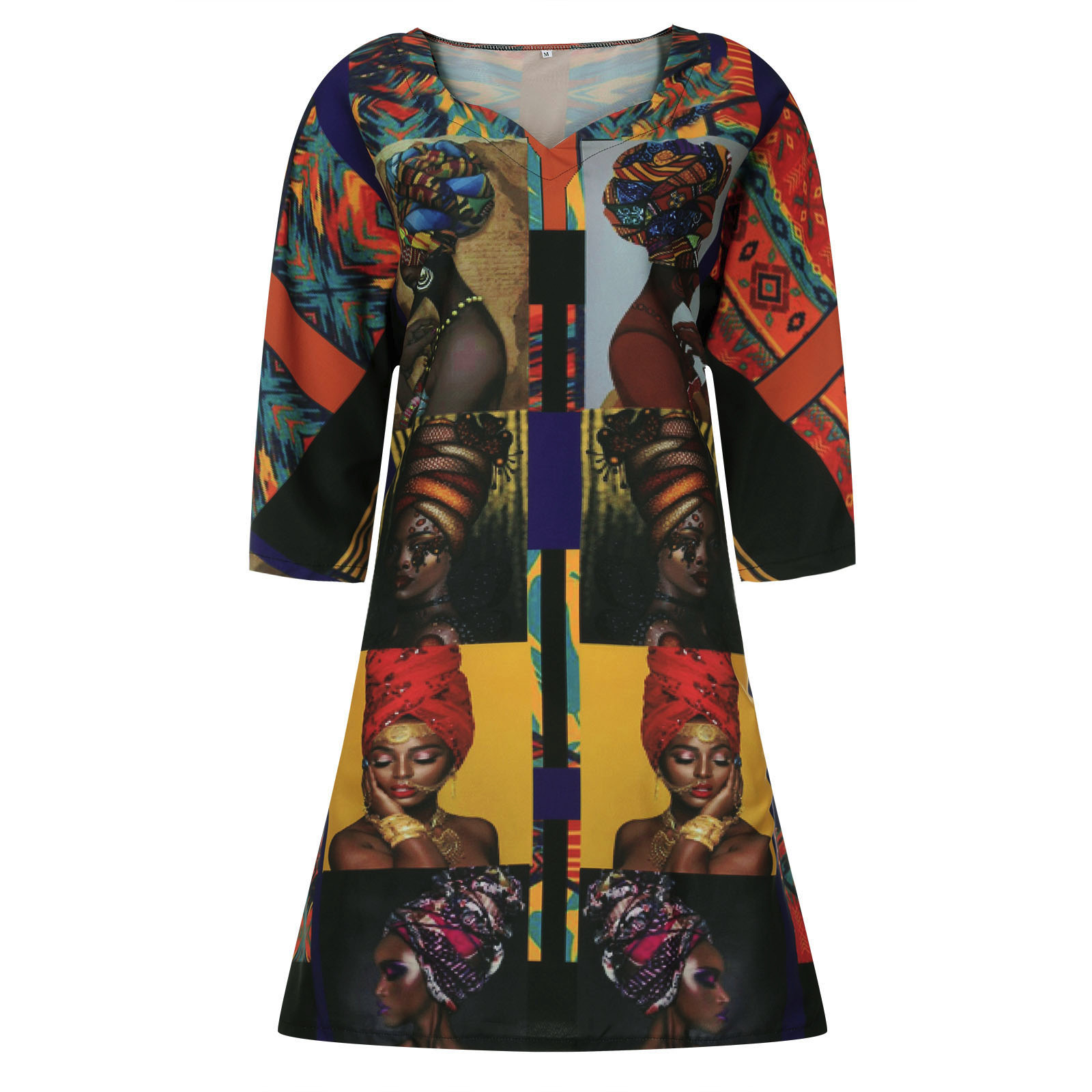 If You will buy for plus size women dress vintage, then 2021 Women Fashion African Vintage Print Middle Sleeve Dresses Ladies Casual Plus Size V-Neck Loose Mini Dress женское платье may be make you love