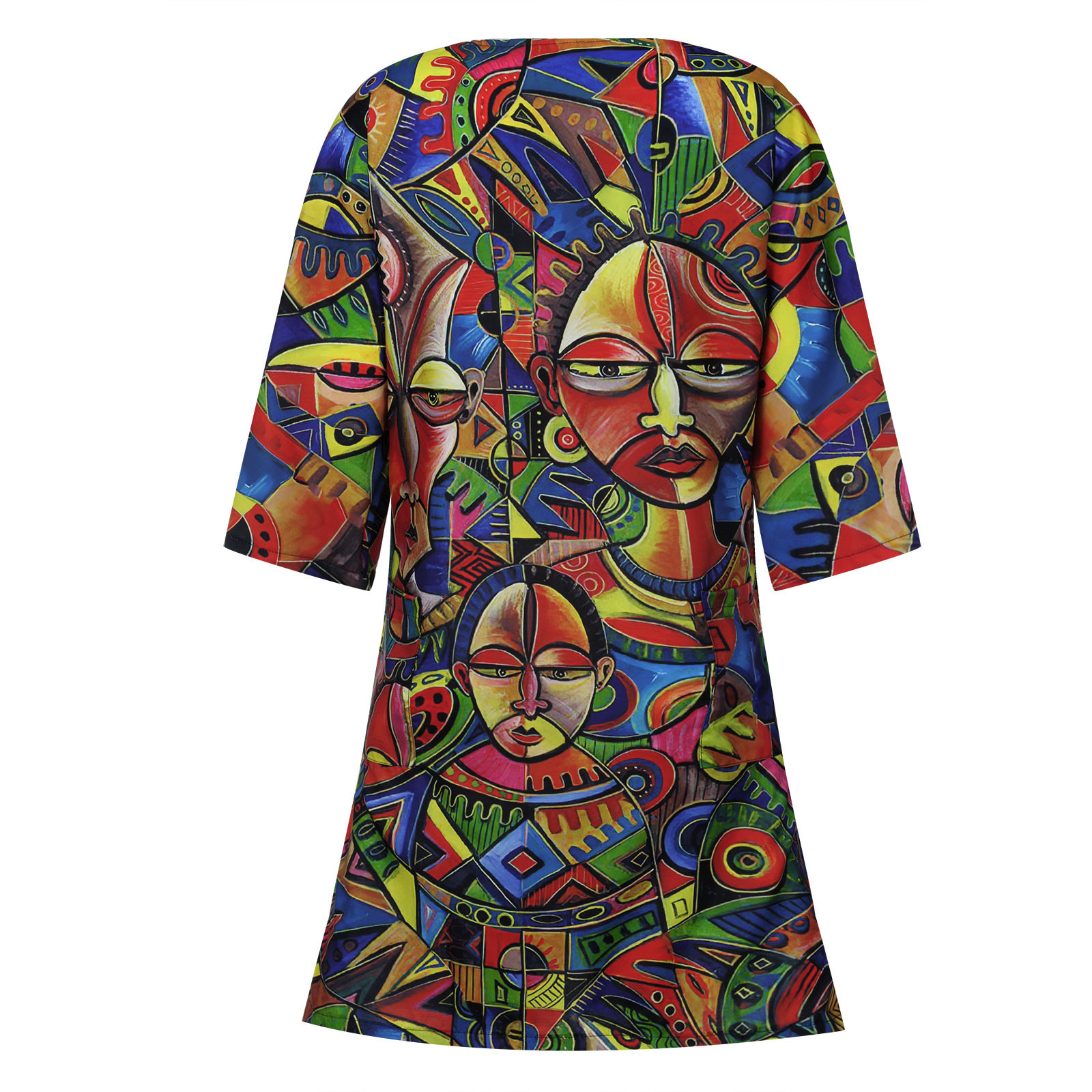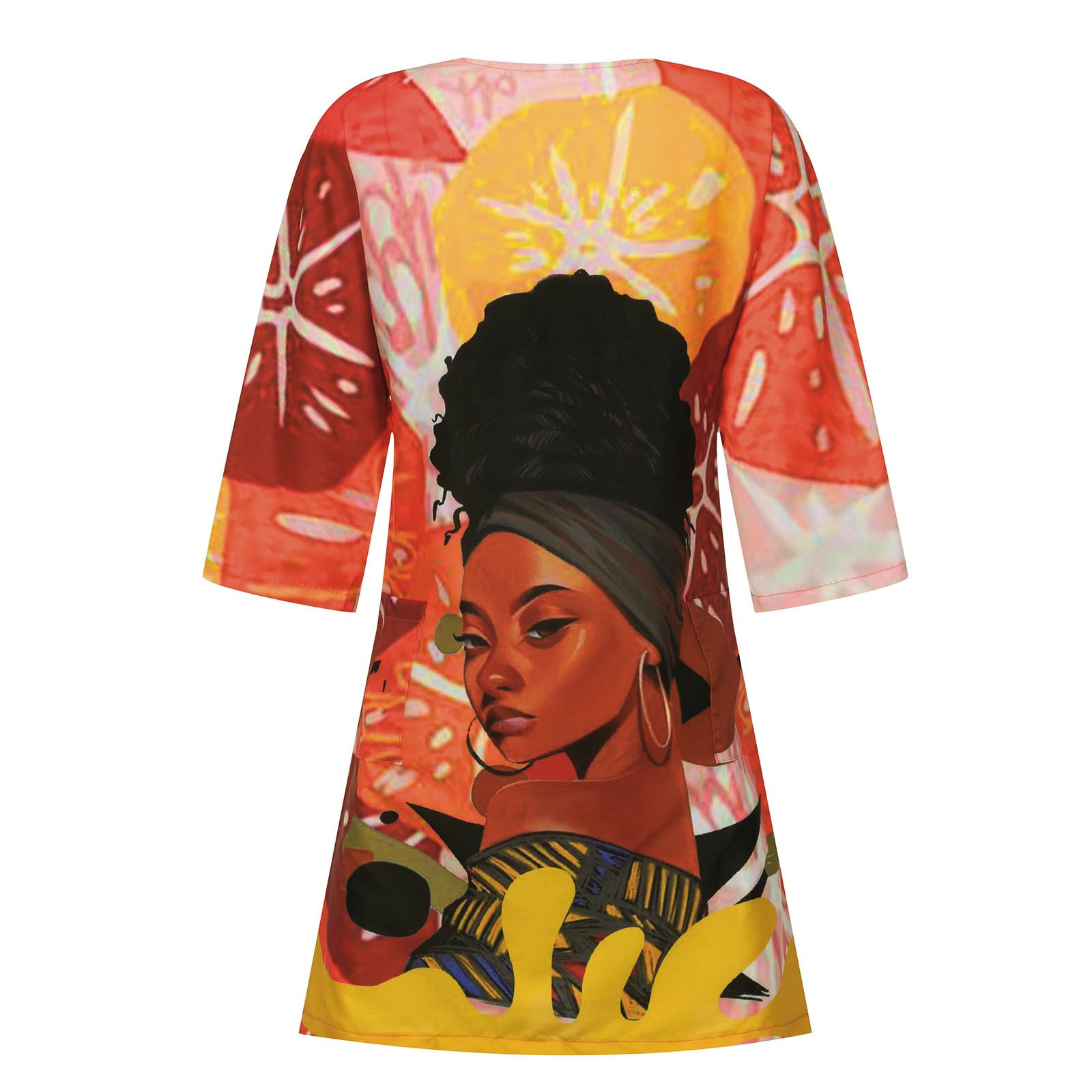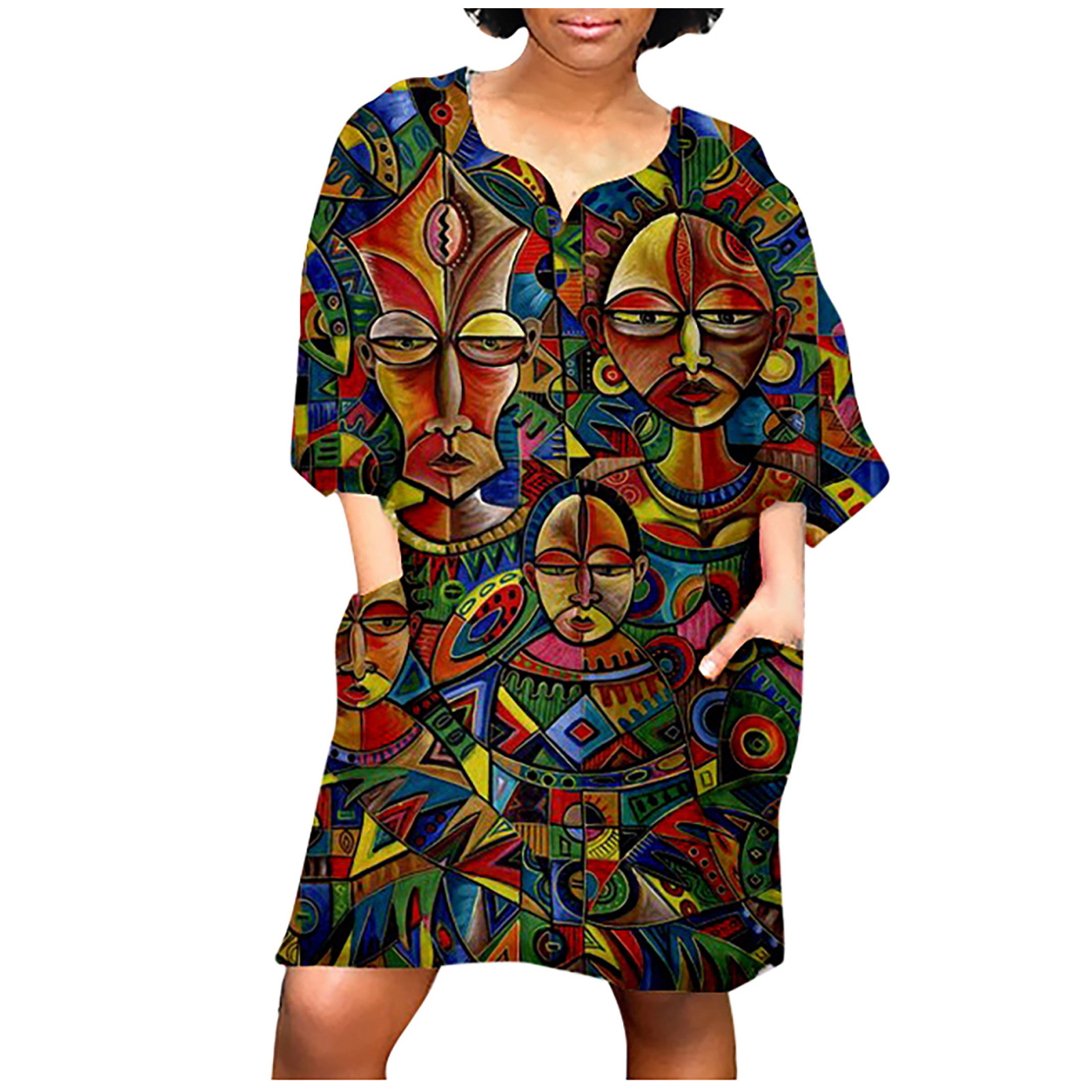 If You will buy for plus size women dress vintage, then 2021 Women Fashion African Vintage Print Middle Sleeve Dresses Ladies Casual Plus Size V-Neck Loose Mini Dress женское платье may be make you love