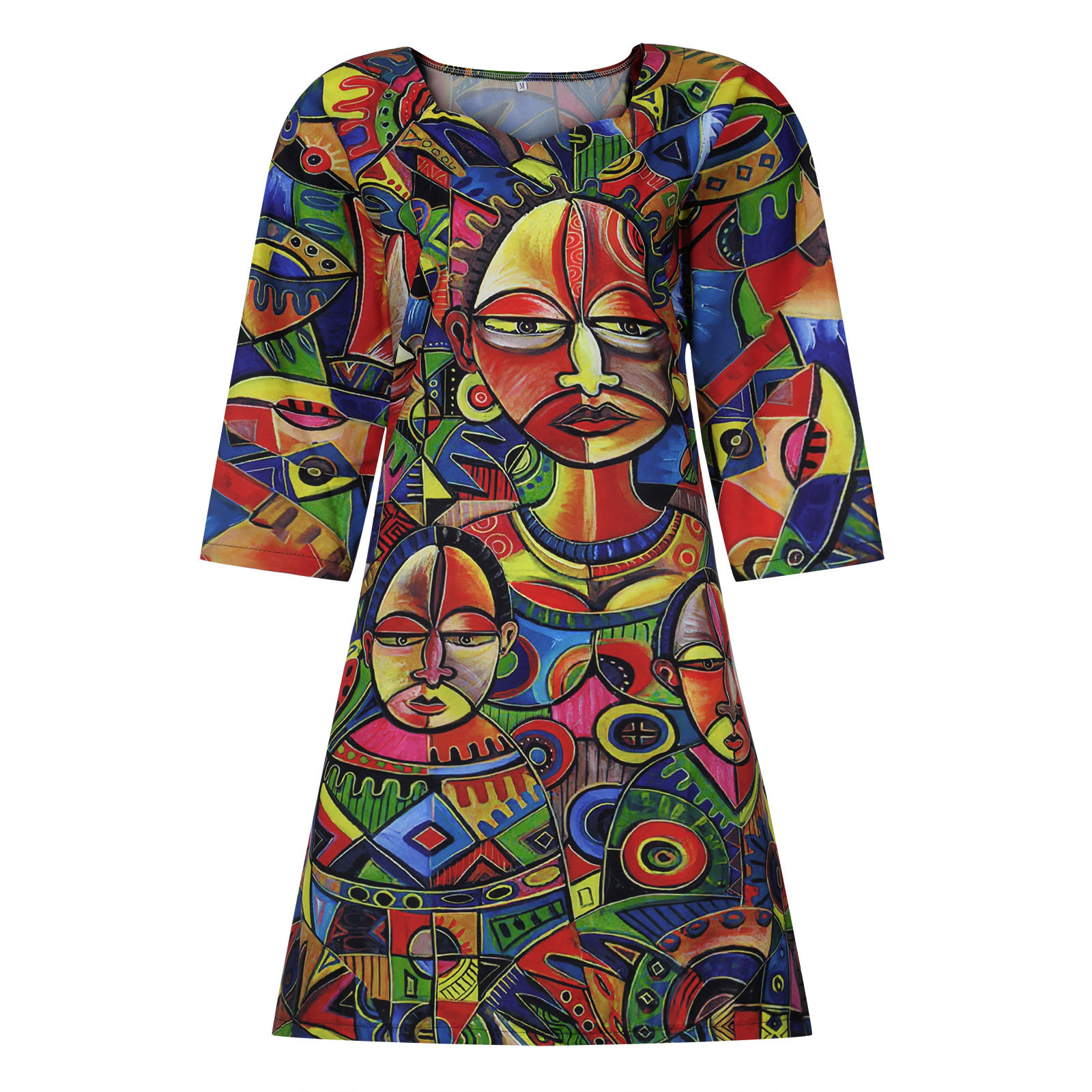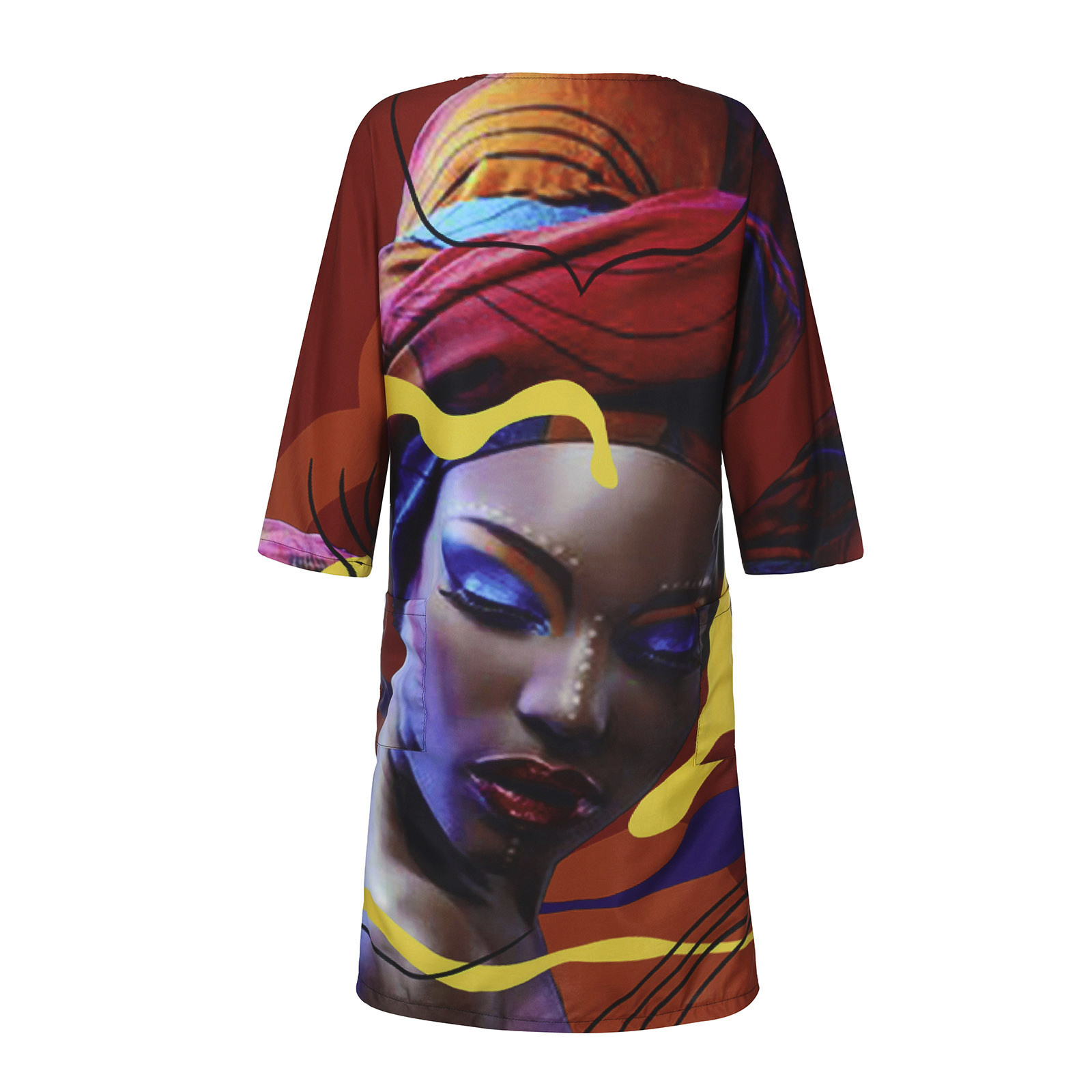 Special Price of 2021 Women Fashion African Vintage Print Middle Sleeve Dresses Ladies Casual Plus Size V-Neck Loose Mini Dress женское платье