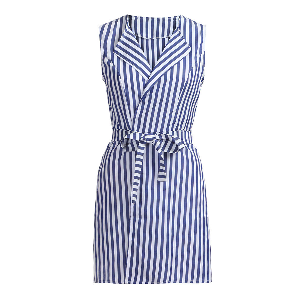 Addition Information of #40 2021 Summer Dress Women Sexy Belt Tie Up Work Office Striped Sleeveless Short Mini Dress Vestidos De Verano Mujeres
