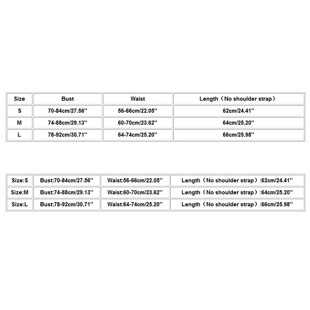 | Size | Bust | Waist | Length(No shoulder strap) |