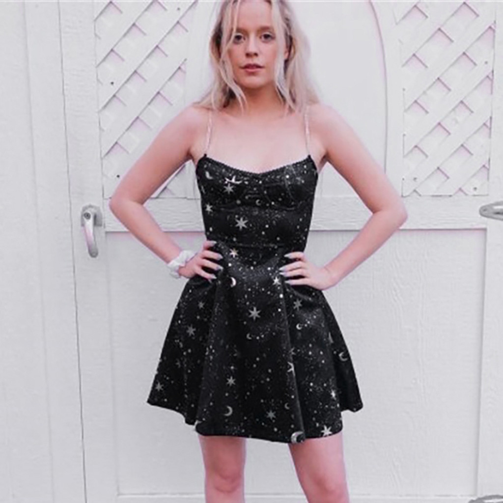 0 Response to "Dresses Women Street Gothic Style Punk Black Retro Dress Moon Print Sleeveless Dresses For Women Casual Sexy Платье На Бретелька"