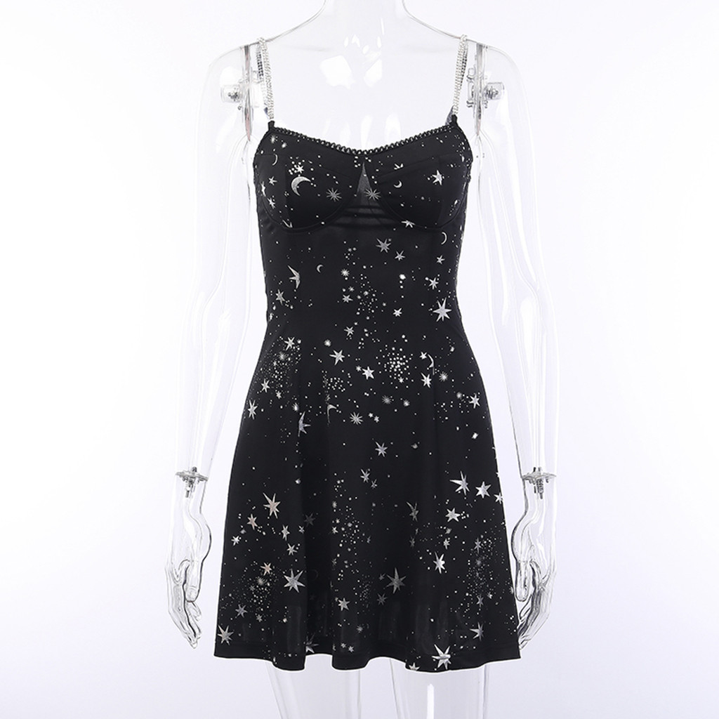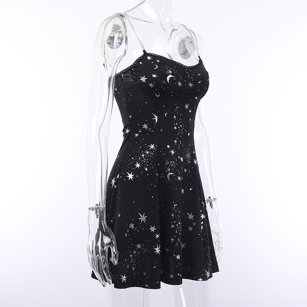 Related Product for black dress women casual and Dresses Women Street Gothic Style Punk Black Retro Dress Moon Print Sleeveless Dresses For Women Casual Sexy Платье На Бретелька