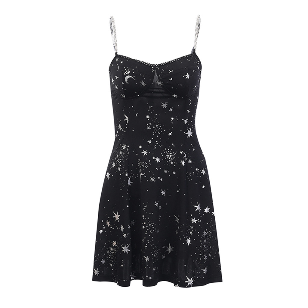 Special Chance for Dresses Women Street Gothic Style Punk Black Retro Dress Moon Print Sleeveless Dresses For Women Casual Sexy Платье На Бретелька
