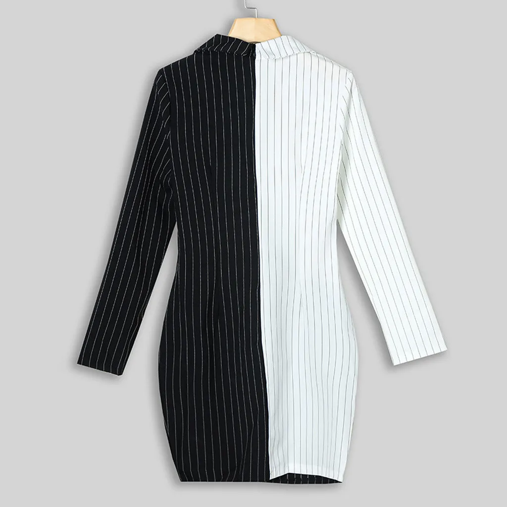 Related Product for work dresses for women 2021 and Lapel long-sleeved button stripe stitching bag hip casual work Women Neck Patchwork Bodycon Blazer Dress женское платье