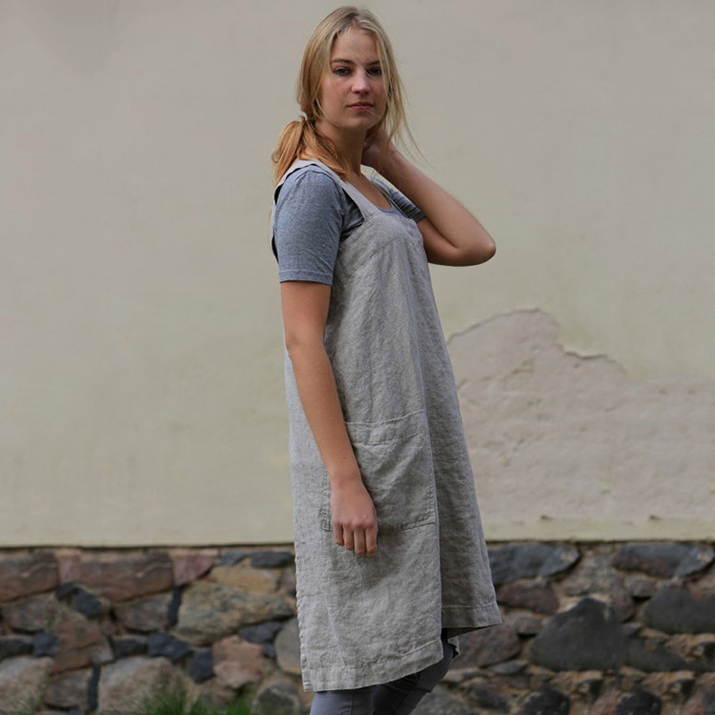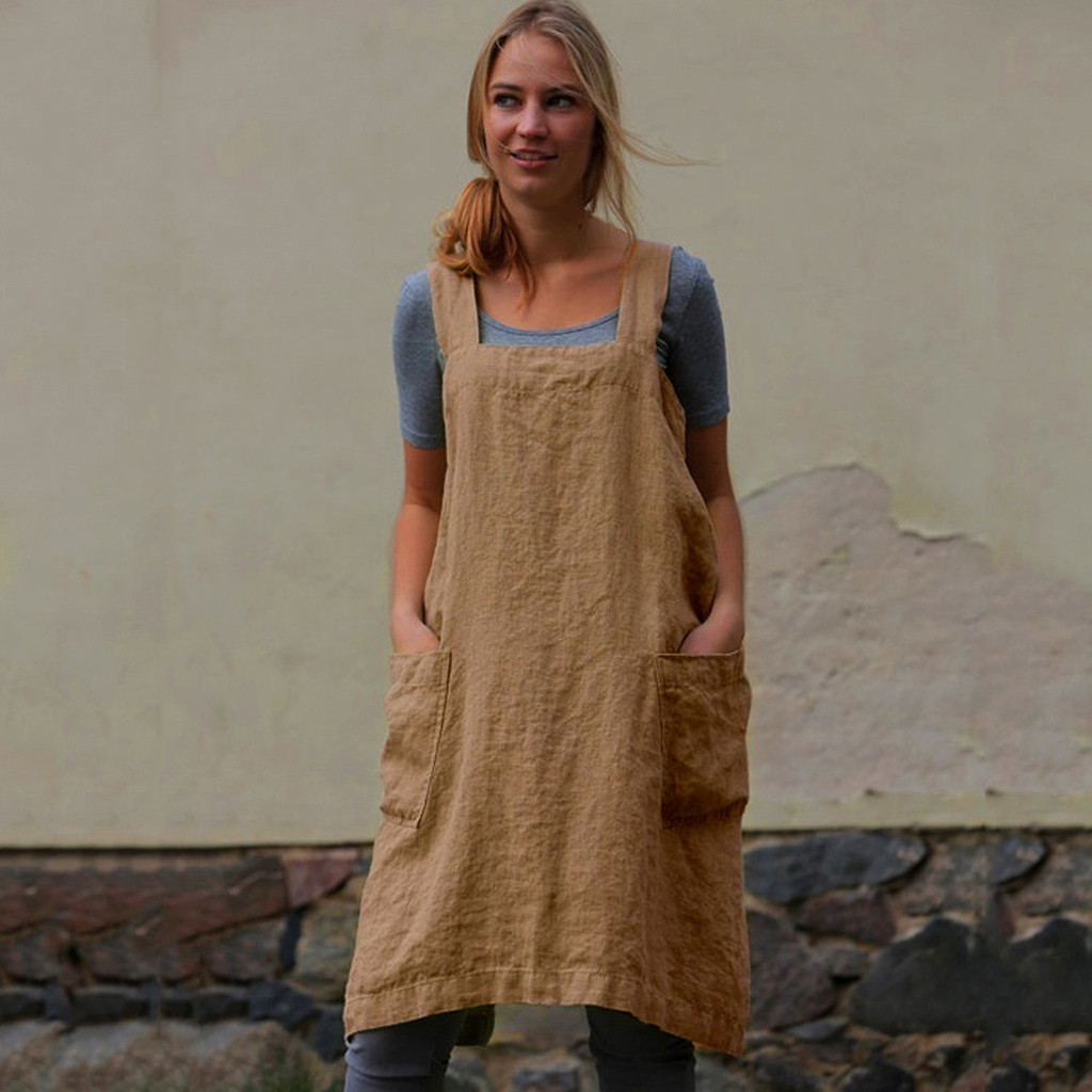 Ropa mujer vestido de mujer Women Cotton Linen Pinafore Square Cross Apron Garden Work Pinafore Dress платье 2021 #445