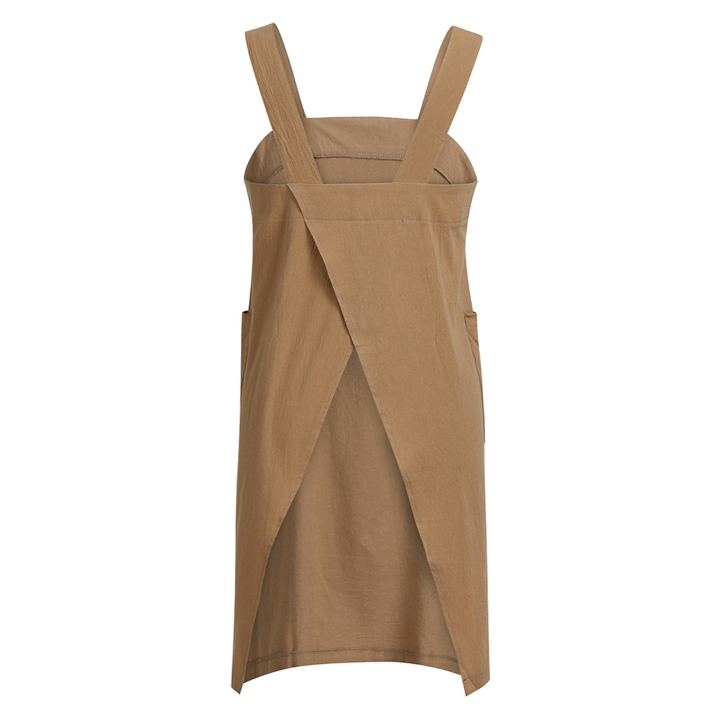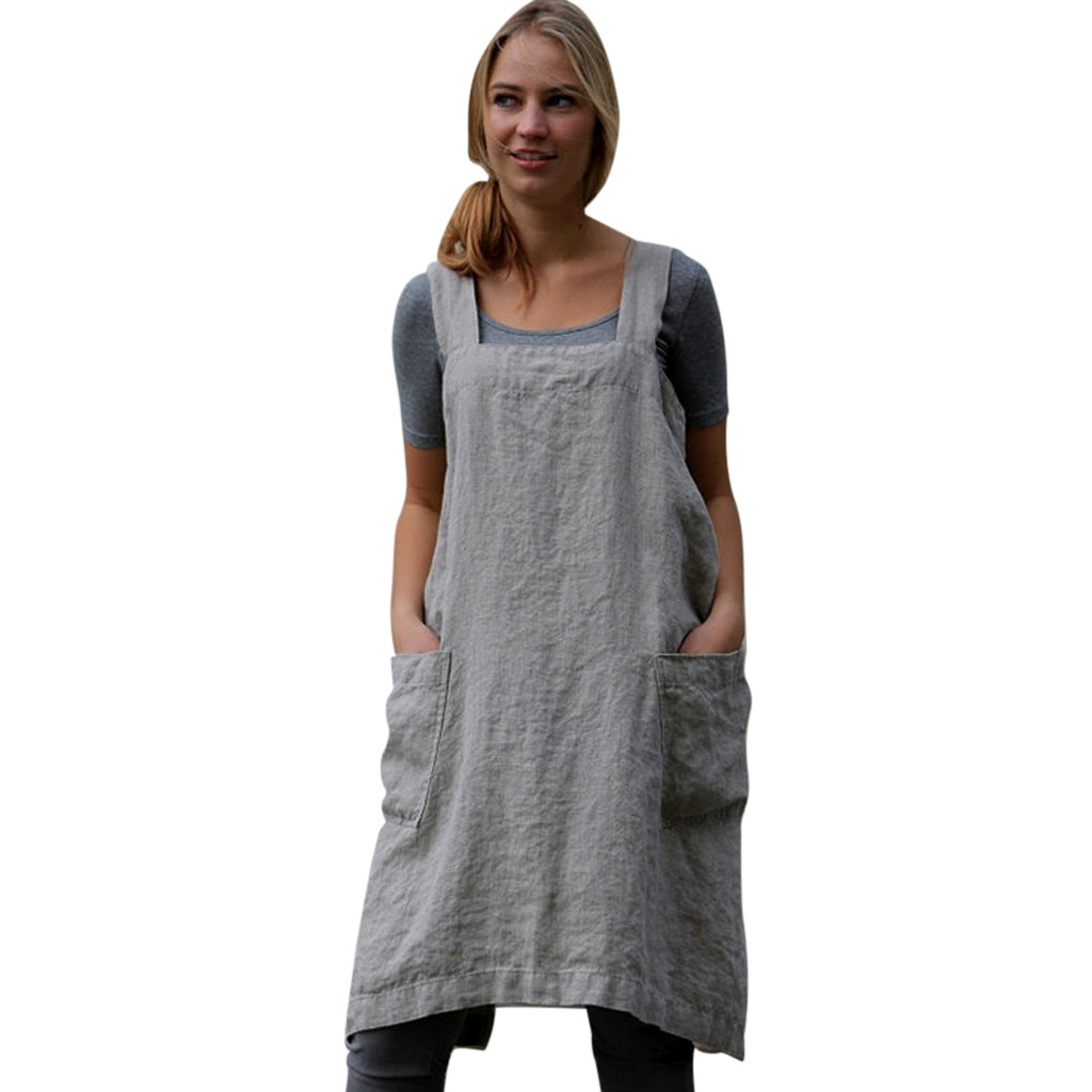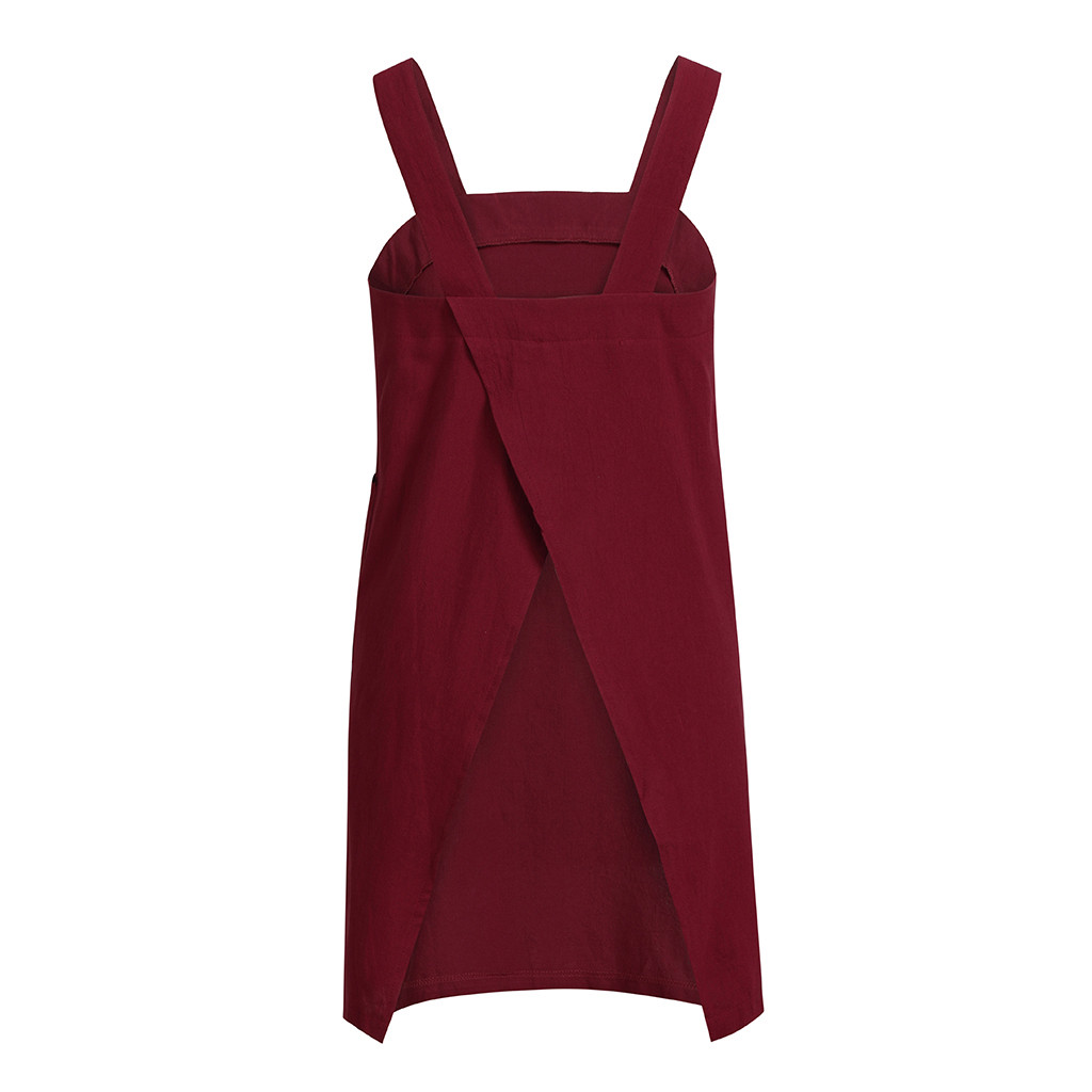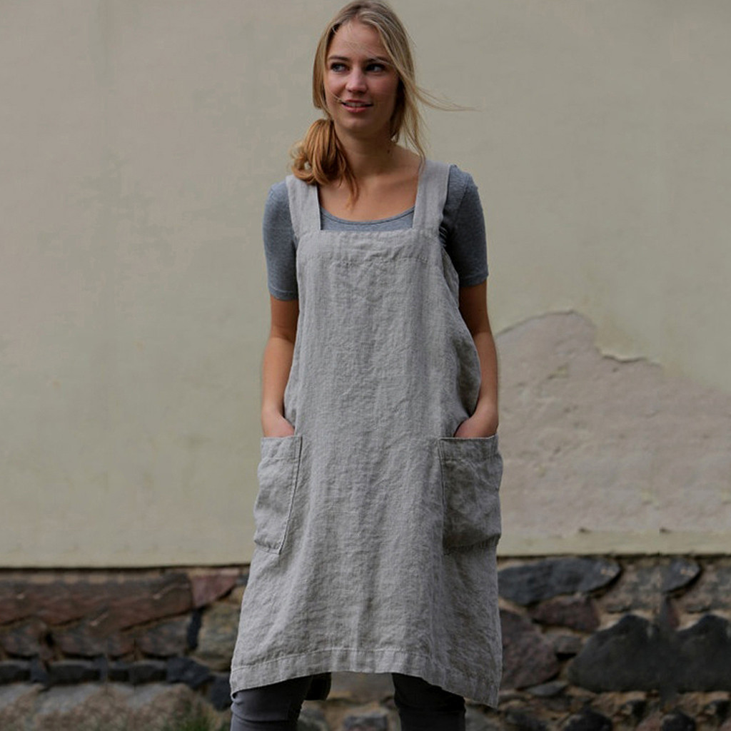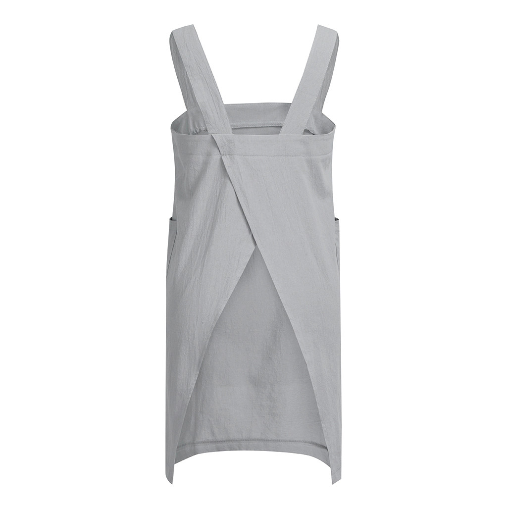 Women Cotton Linen Pinafore Square Cross Apron Garden Work Pinafore Dress
