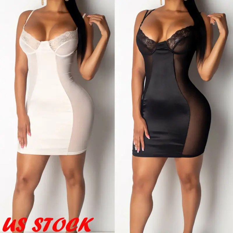 Women Bandage Bodycon Deep V-neck Dress Summer Strappy Lace Mesh Patchwork Dresses Women Wrap Slim Party Club Dress Vestidos