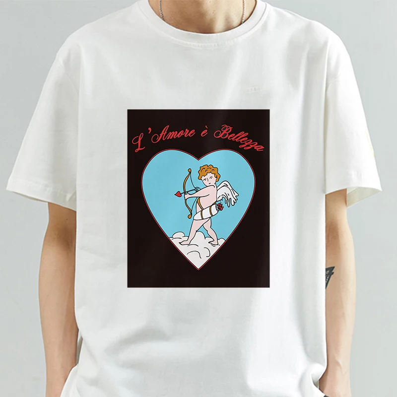 Heart for Lover's Printed Men Women Vintage White T shirts Plus Size Round Neck Tops Harajuku Short Sleeved Summer Cotton Tshirt