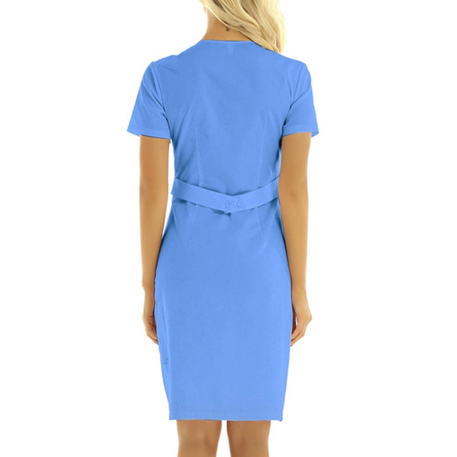 Addition Information of Women Casual Short Sleeve V-neck Solid Working Uniform Solid Pocket Dress