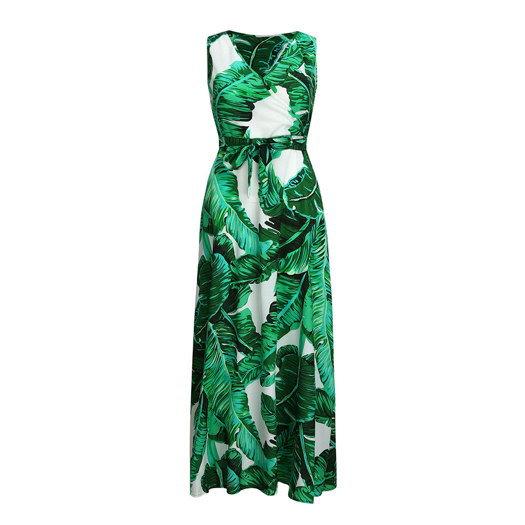 Limited Offer for Women's Dress 2021 Semmer Fashion Womens Sleeveless Stylish Chiffon With Belt V-neck Printed Floral Maxi Beach Party Dress