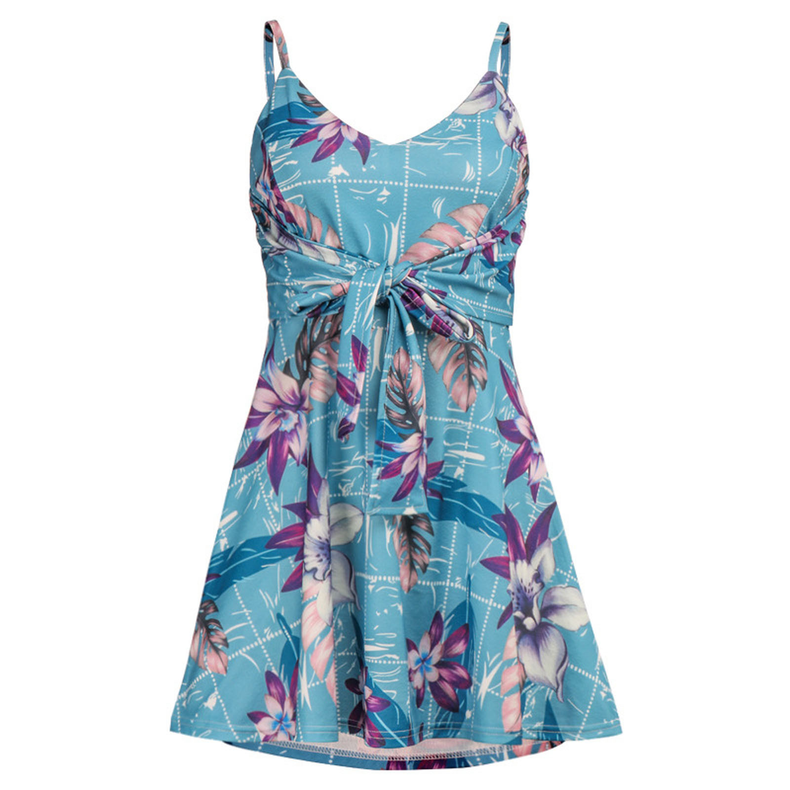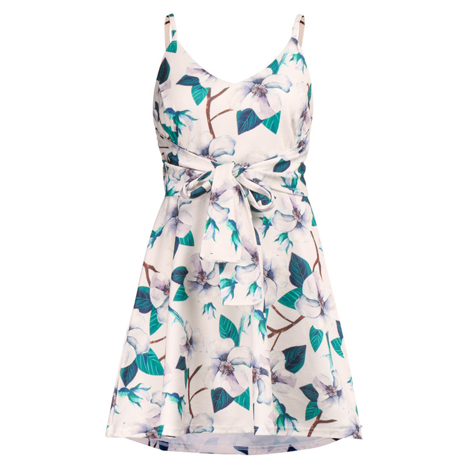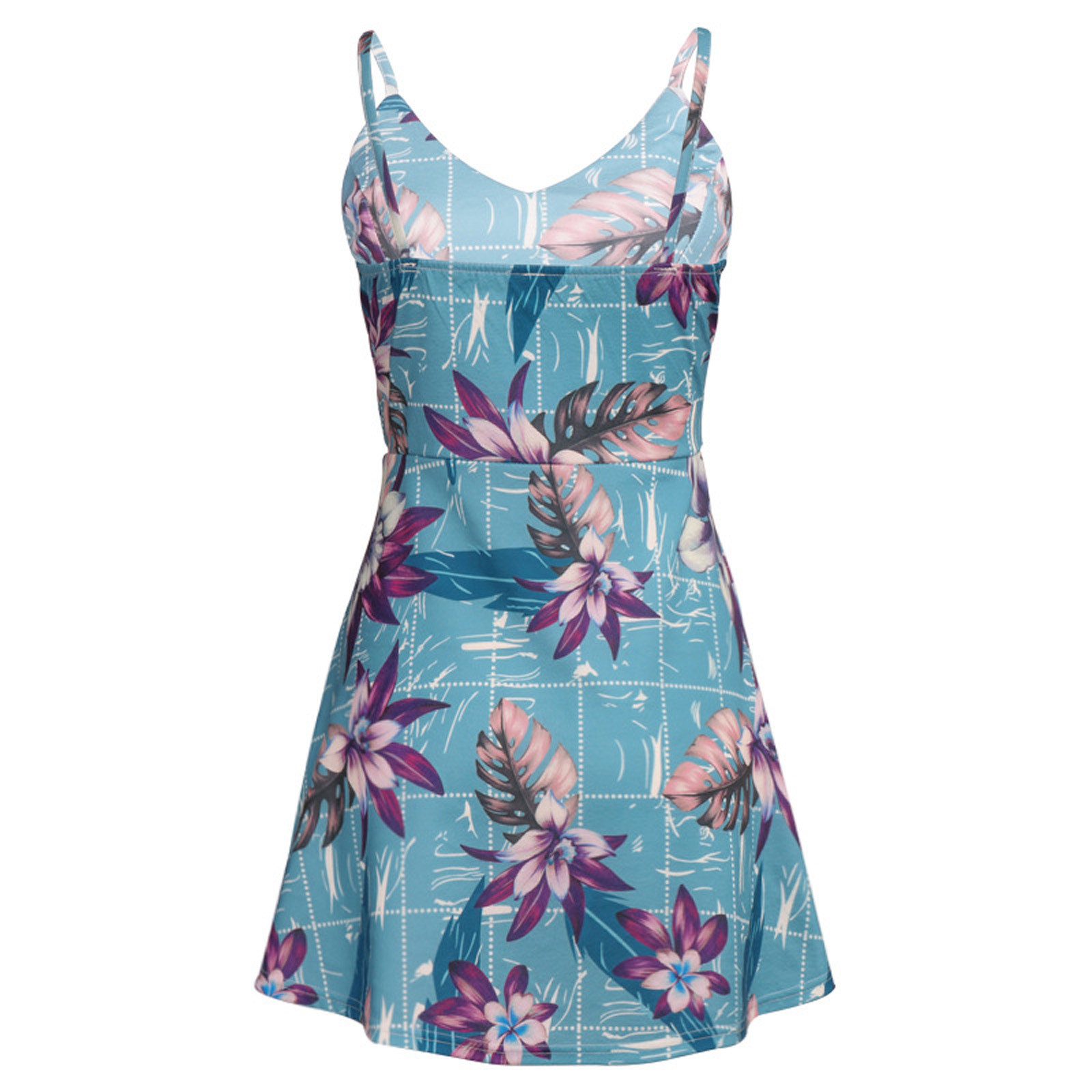 Related Product for flower print dress and Women Ladies V-neck Dresses Sleeveless Condole Belt Flowers Print A-line Dress For Women 2020 Платье Summer Dress