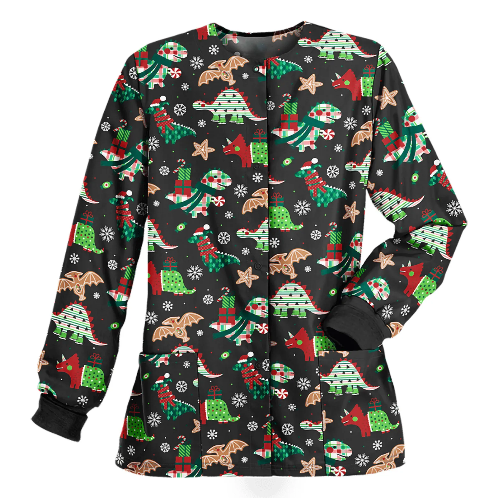 Women Long Sleeve Cardigan Tops Working Uniform Christmas Thanksgiving Blouse
