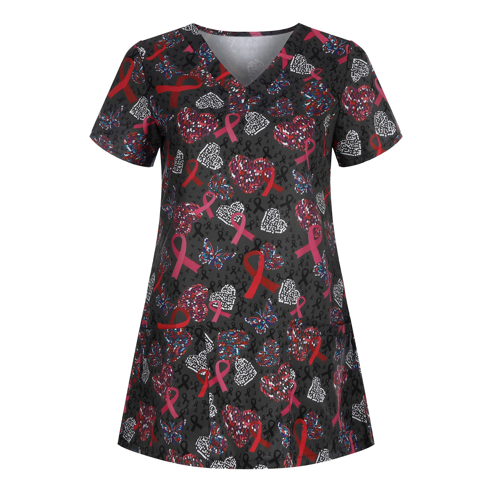 Women Short Sleeve V-neck Tops Working Uniform Christmas Thanksgiving Blouse Woman Dress Mujer Camisetas Sukienka Damska #S